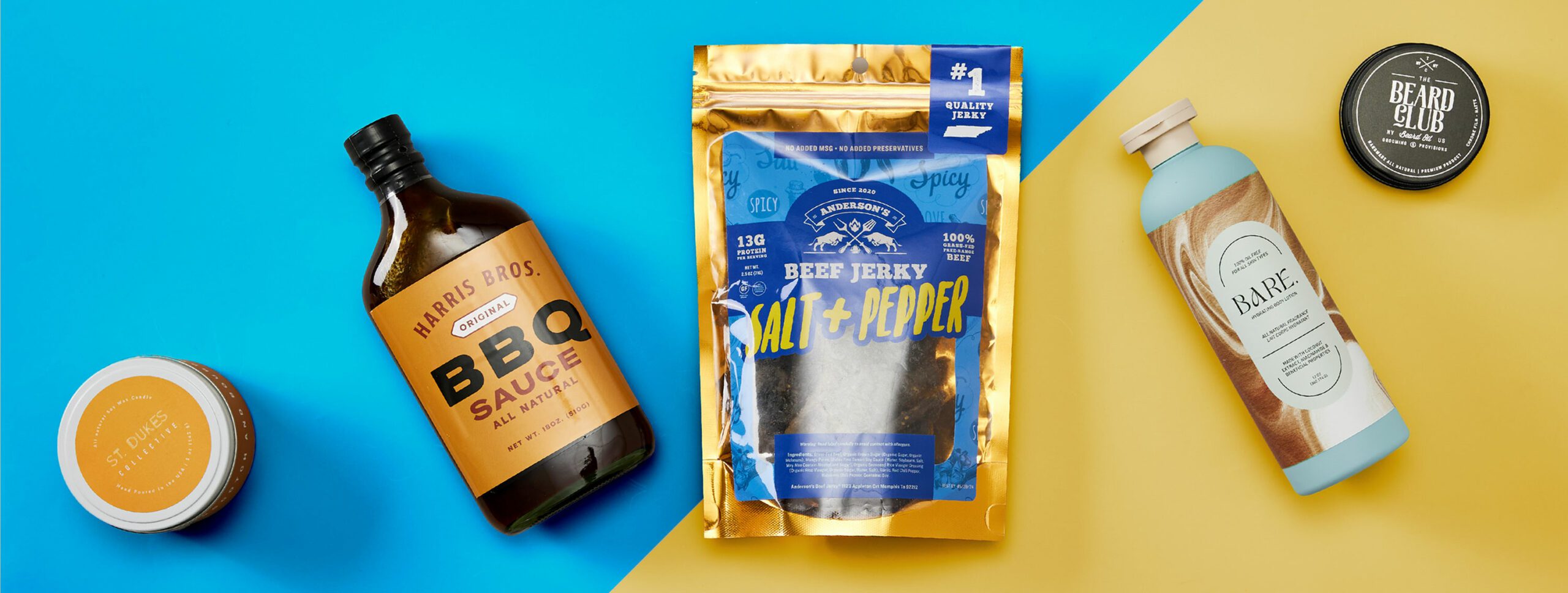 Condiments, sauces, jam, honey, marinade, frozen foods, bakery items, snack food, candy, spices, barcodes, coffee, tea, juice, water, beer, wine, hard liquors, craft brews