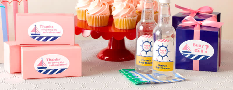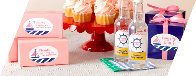 Personalize your baby shower with customized baby shower labels you can print from home. Easily personalize your labels to match the color and style of your baby shower invitations and all your other party decorations. Avery blank labels are available online by the sheet with no minimum orders. They come in many different sizes, shapes and materials to match your party theme. Create matching address labels, invitations, personalized water bottle labels other coordinating labels for all your party favors and decorations.