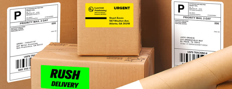 Avery blank shipping labels come in over 3,100 combinations of shapes, materials, and finishes. Need a custom size? We can do that too at no extra charge. Just enter your label size, order your labels by the sheet, and then print. So when you need a branded shipping label for USPS, UPS, PayPal, Amazon, or another major platform, our printable shipping labels are always available and easy to use.