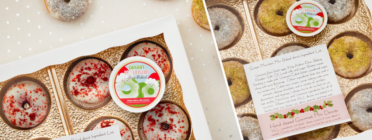 First, they’re adorable and they bring an instant smile to everyone’s face. Second, they’re three little bites of baked-donut heaven thanks to local Vermont ingredients and unique toppings that deliver deliciousness. And because they’re baked and not fried, they can be stored for up to a week.