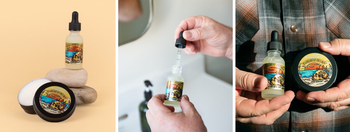 Jeremy Howald, the founder, is the artistic mind behind the company’s amazingly creative product labels and he loves designing the weird and funny stuff you’ll find. While co-owner Alex Canales is the master mixologist behind all the unique scents. Everything (except the wash & conditioner) is made in-house.