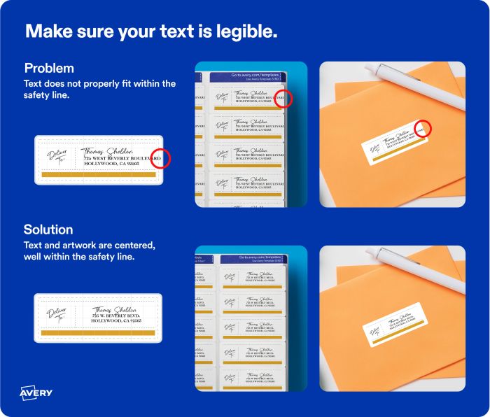 • Keep important details (like addresses and barcodes) inside the safety area.