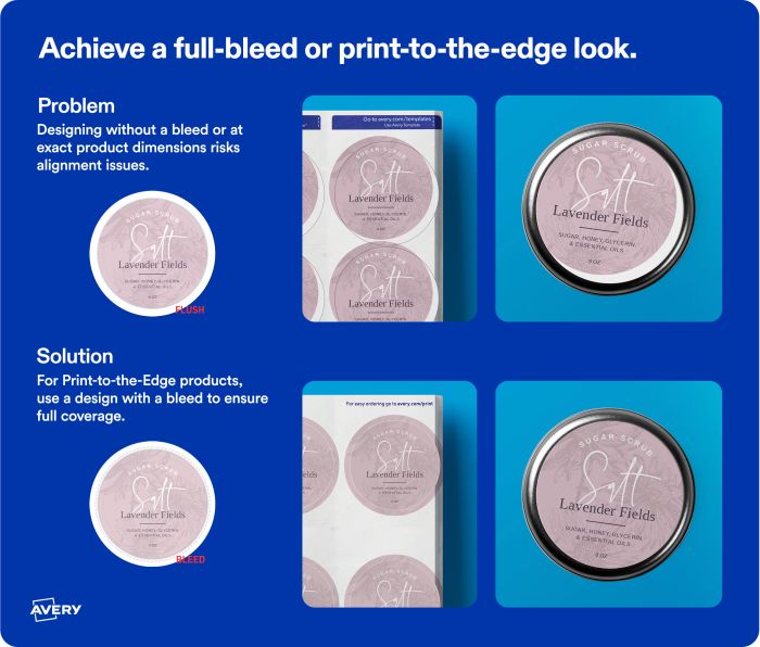 add full-bleed designs and colors when you print your labels or order custom labels