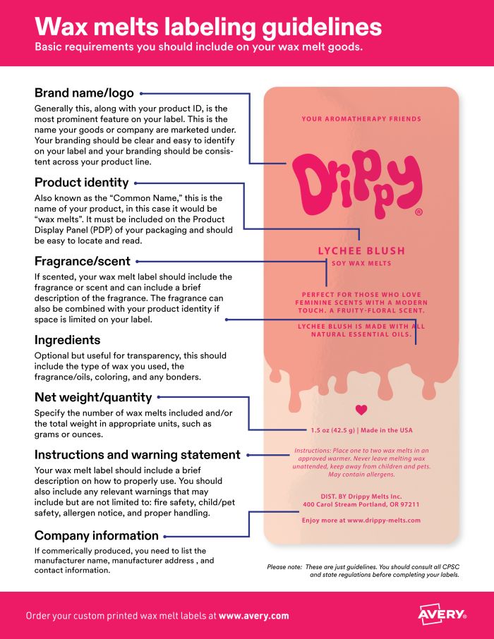 Here’s a quick wax melt labeling guide you can refer to every time you create or update your product labels.