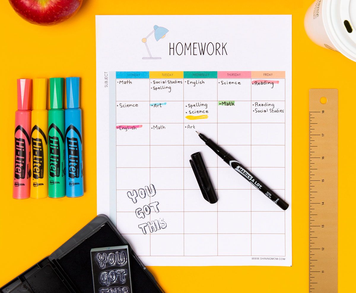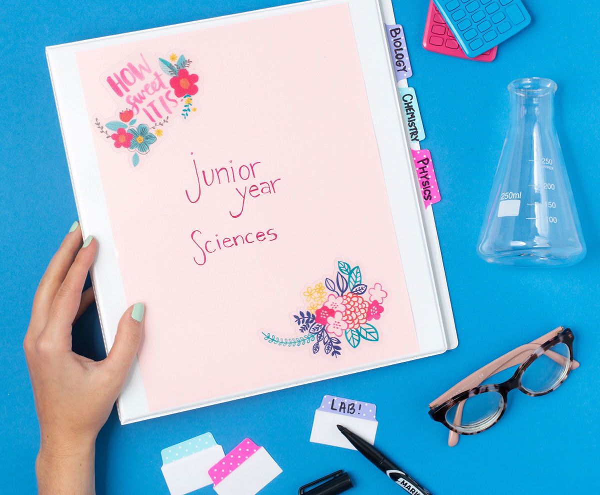 Next, create your own dry-erase schedules and calendars with sheet protectors and self-laminating sheets so you never miss a beat. Then, grab repositionable tabs, highlighters and color-coding labels to stay organized all year long. You can even color-code binders by subject using free binder cover templates.