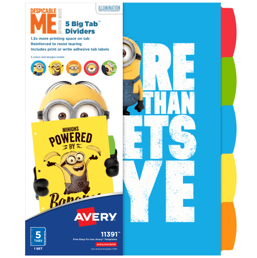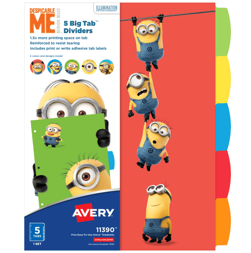 Avery Despicable Me Big Tab™ Fashion Dividers, 5-Tab Sets
