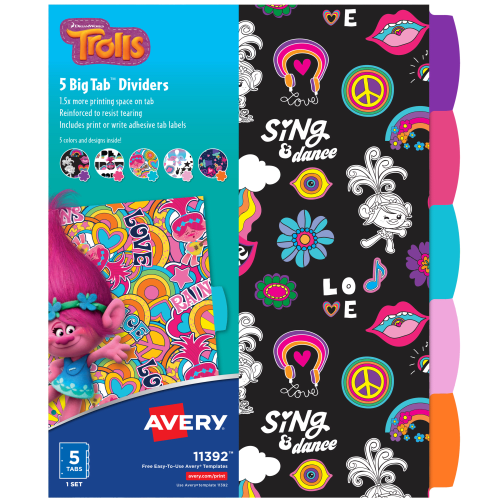 Avery DreamWorks Trolls Big Tab™ Fashion Dividers, 5-Tab Sets