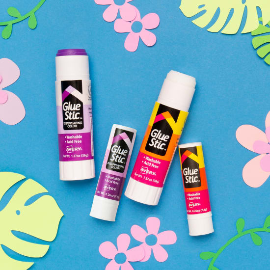 Craft & create with less mess. Avery Glue Stics™ dry quickly and leave a strong, permanent stick on surfaces from paper & cardboard to fabric & photos. From regular & large sizes to white & disappearing purple glue stick options, we have just what you need for any project.