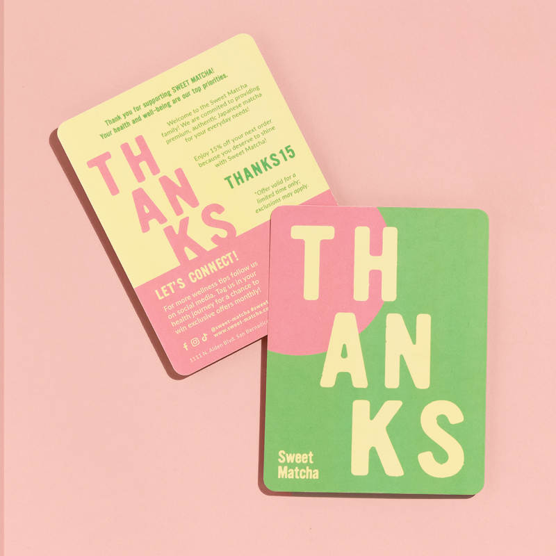Enhance your shipments using custom postcards as packaging inserts and thank-you cards that leave a lasting impression on your customers.