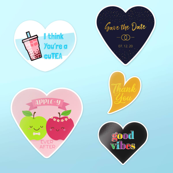 Our heart labels are professionally printed on industry-leading digital printers. Choose from a huge assortment of superior materials and finishes to get the exact look you want. Order your labels on sheets or rolls and buy as few as two label sheets or thousands of roll labels. Simply personalize your labels online for free and order. It's that easy.