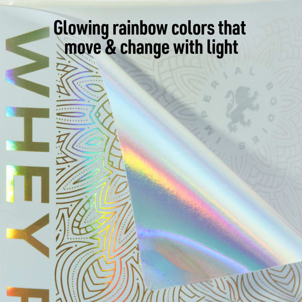 Create dazzling product labels with our holographic film. This waterproof film boasts mesmerizing rainbow colors that dance and shift with light and reflection.