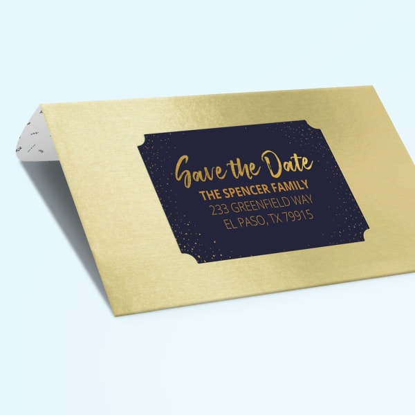 You can also mix and match your wedding stickers and labels in a single order. You can get metallic wedding stickers for wedding favors, wedding labels for gift bags and personalized wedding favor tags all with your matching theme. Check out all of our awesome custom card products as well to create an entire suite of matching wedding products.