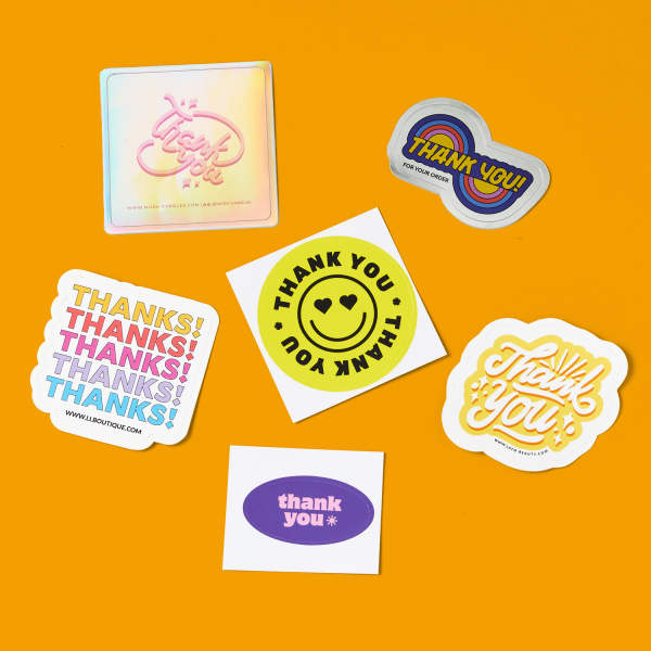 Easily create and order top-quality thank you stickers in minutes. Design your stickers in your size and shape, and order only as many as you need. Easy to peel and stick, with no residue left behind when removed.