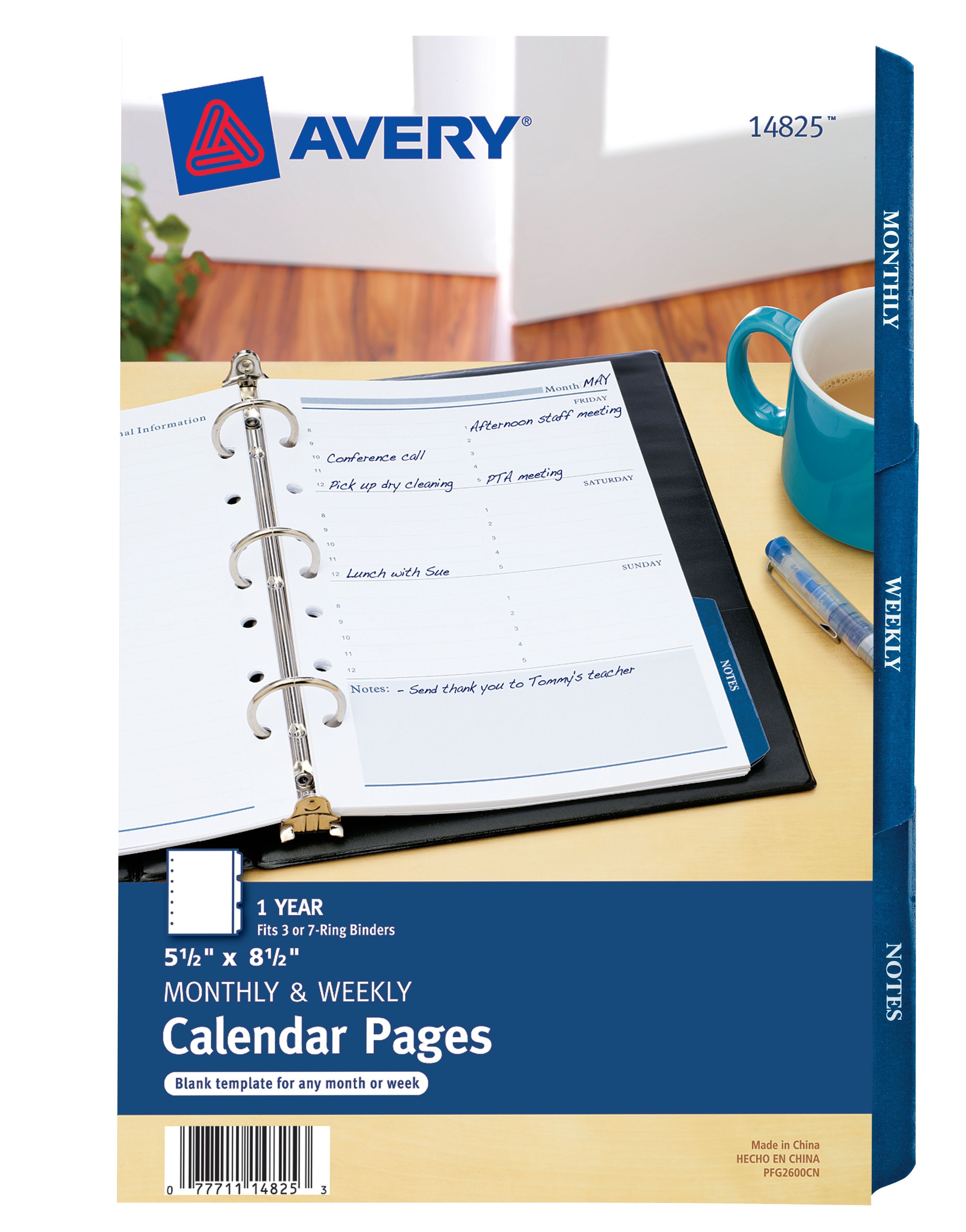 Avery® Calendar Pages, Monthly and Weekly, 5-1/2" x 8-1/2", 25 Pages (14825)