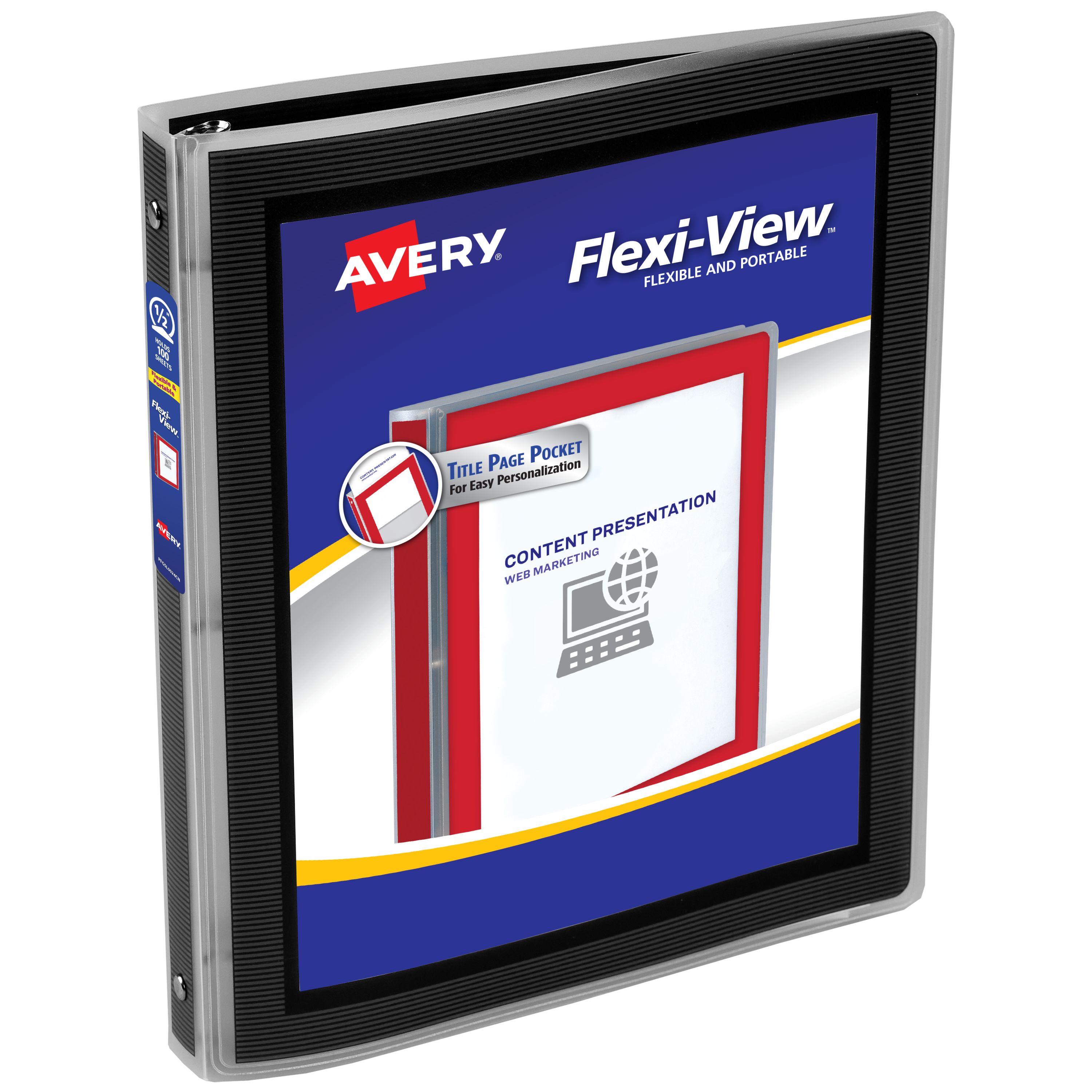 Avery® Flexi-View™ Binder, 1/2" Round Rings, 100-Sheet Capacity, Black (15767)