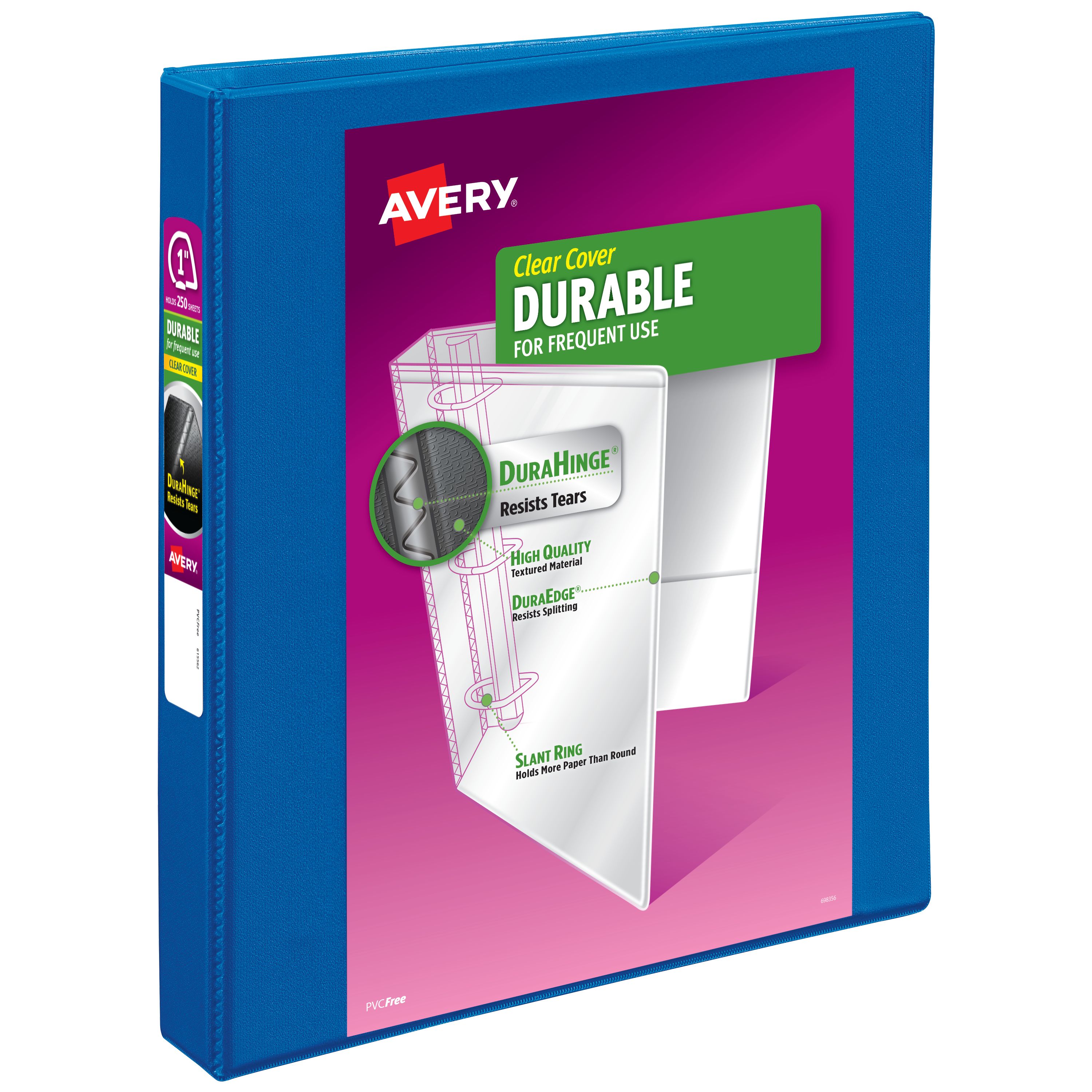 Avery® Durable View 3 Ring Binder, 1 Inch Slant Rings, 250-Sheet Capacity, Dark Blue Binder (17014)
