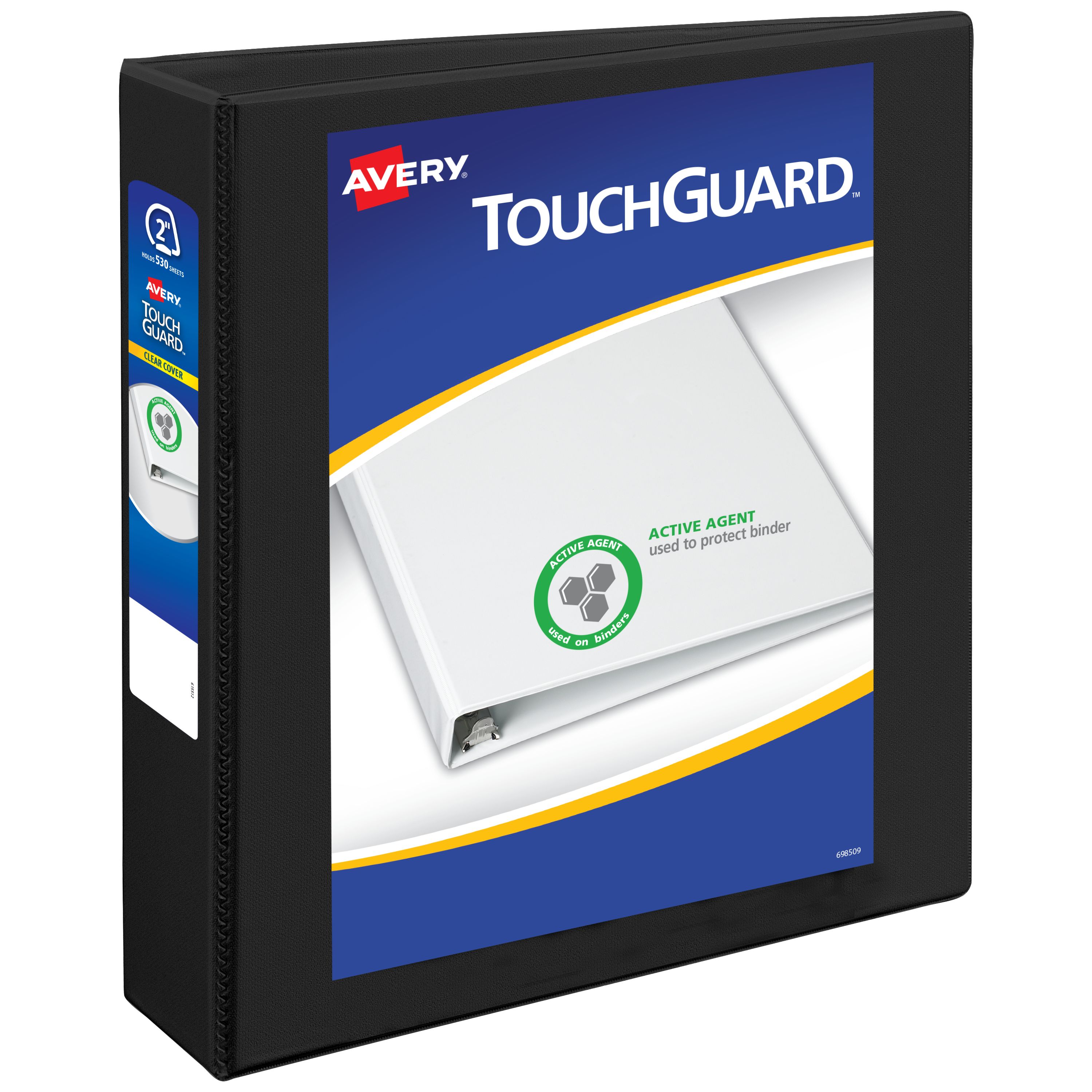 Avery® TouchGuard™ Protection View 3 Ring Binder, Clear View Cover, 2" Slant Rings, 1 Black Binder (17119)