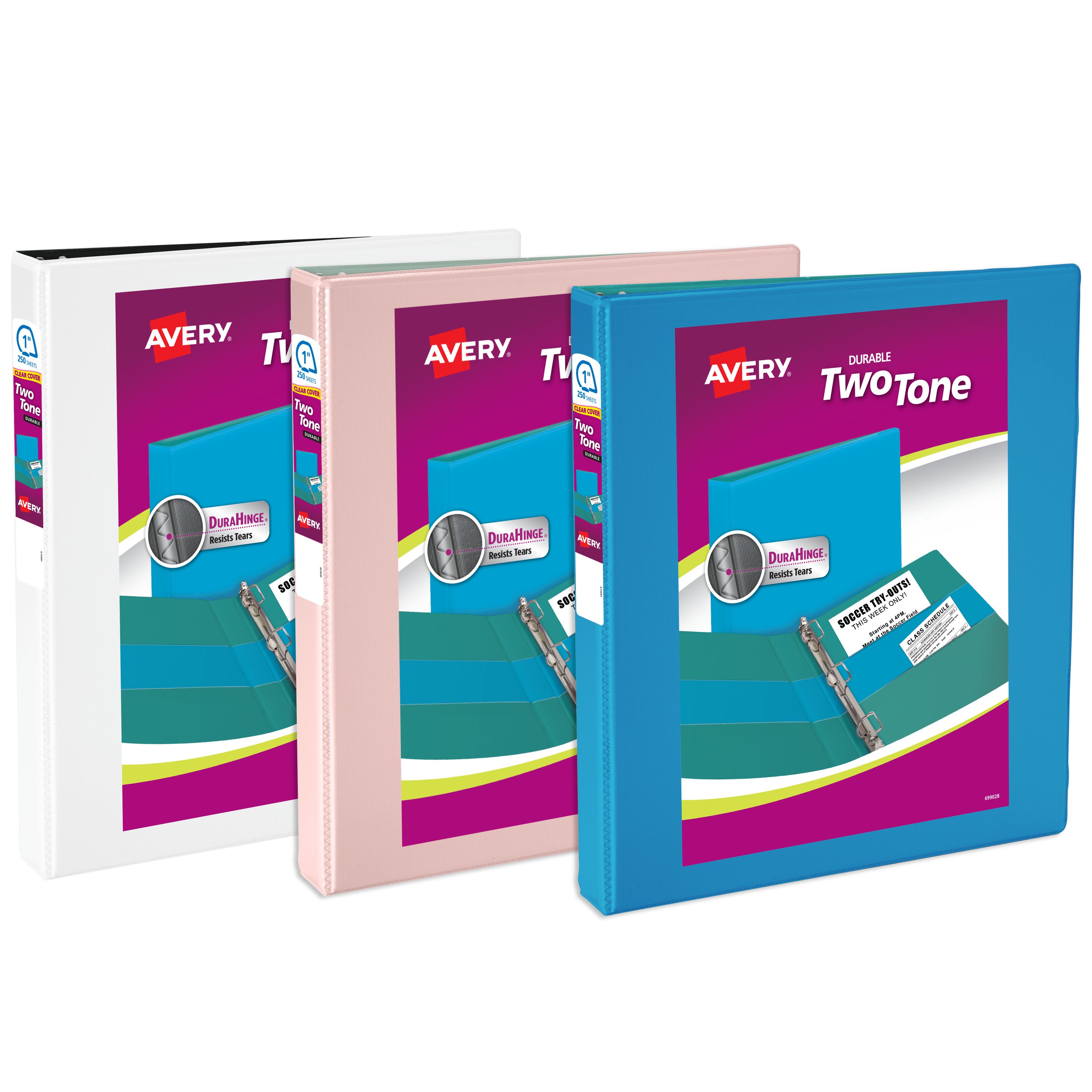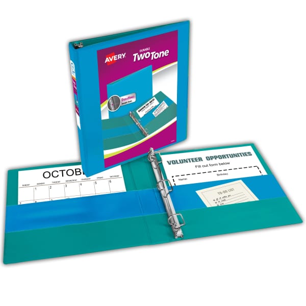 Avery® Two-Tone Durable View Binder, 1" Slant Rings, 220-Sheet Capacity, DuraHinge™, Assorted Colors (17191)