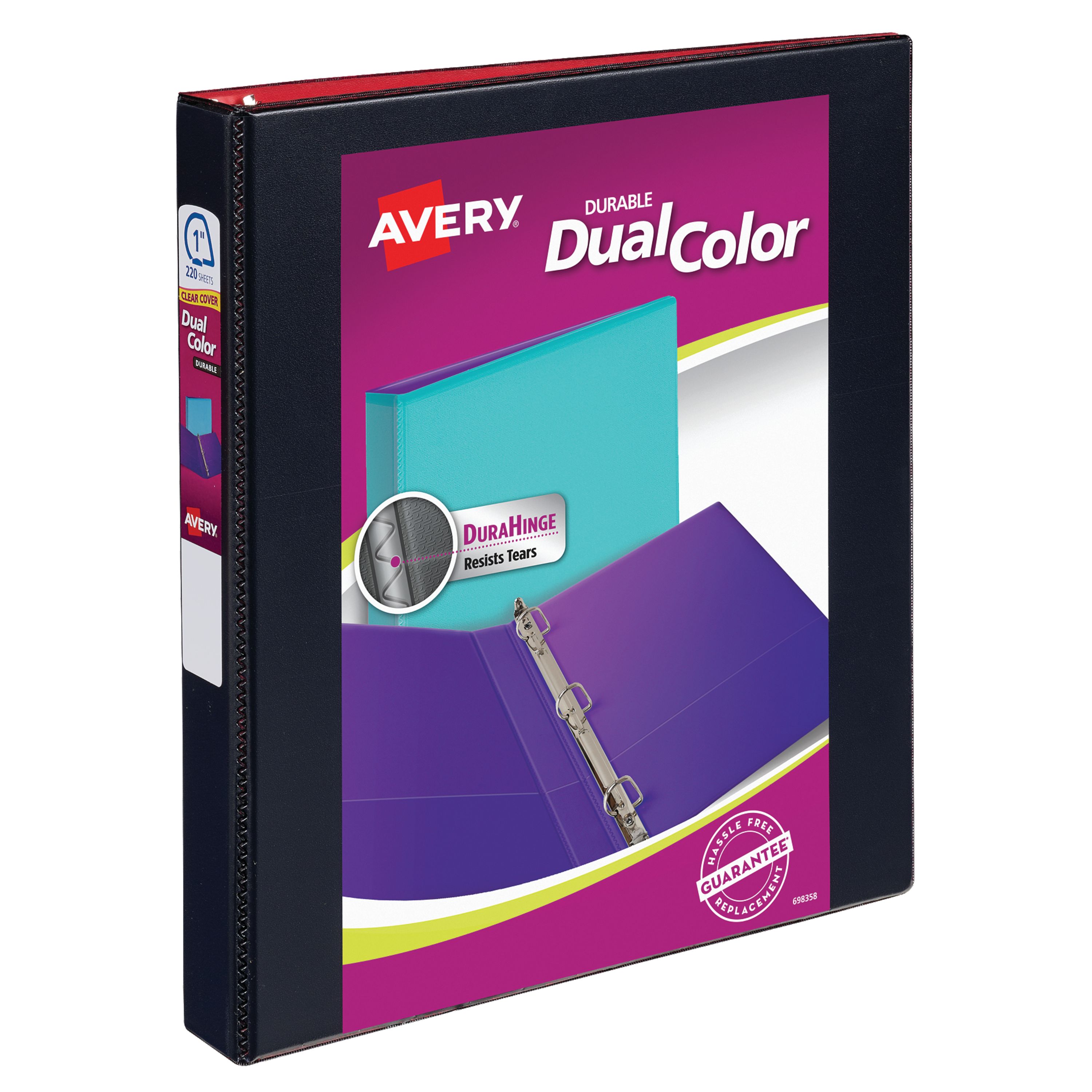 Avery® Dual-Color Durable View Binder, 1" Slant Rings, 220-Sheet Capacity, Black/Red (17216)