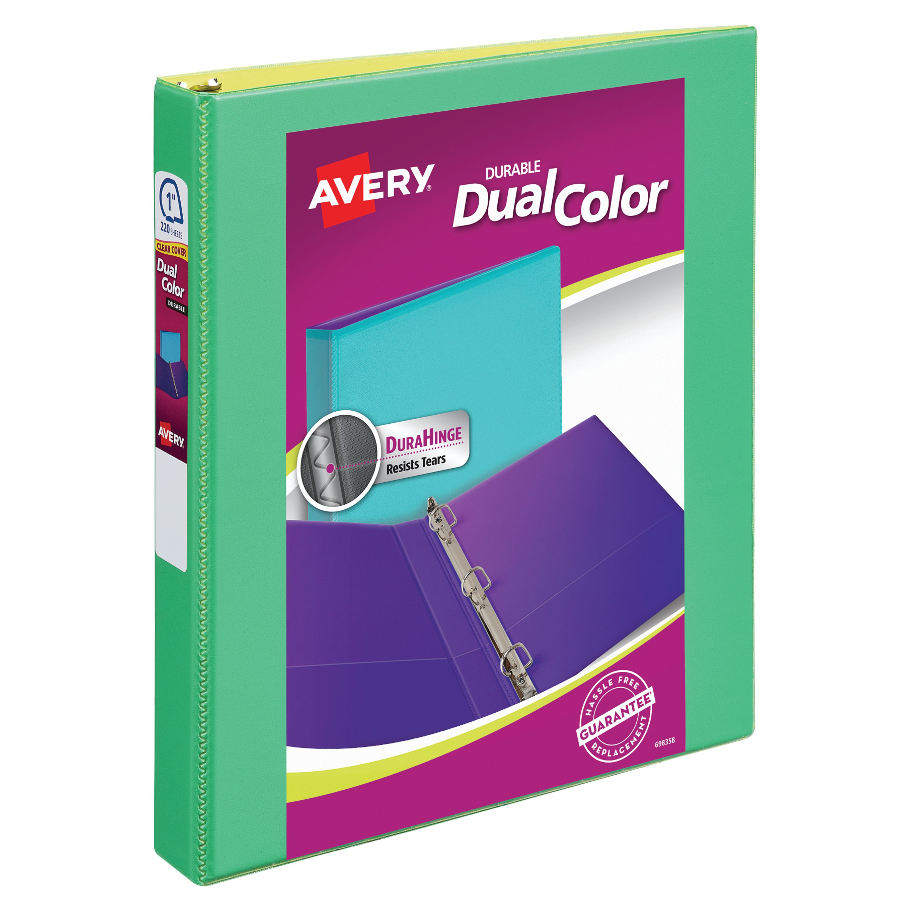 Avery® Dual Color Durable View Binder, 1" Slant Rings, 250-Sheet Capacity, Green/Yellow (17217)