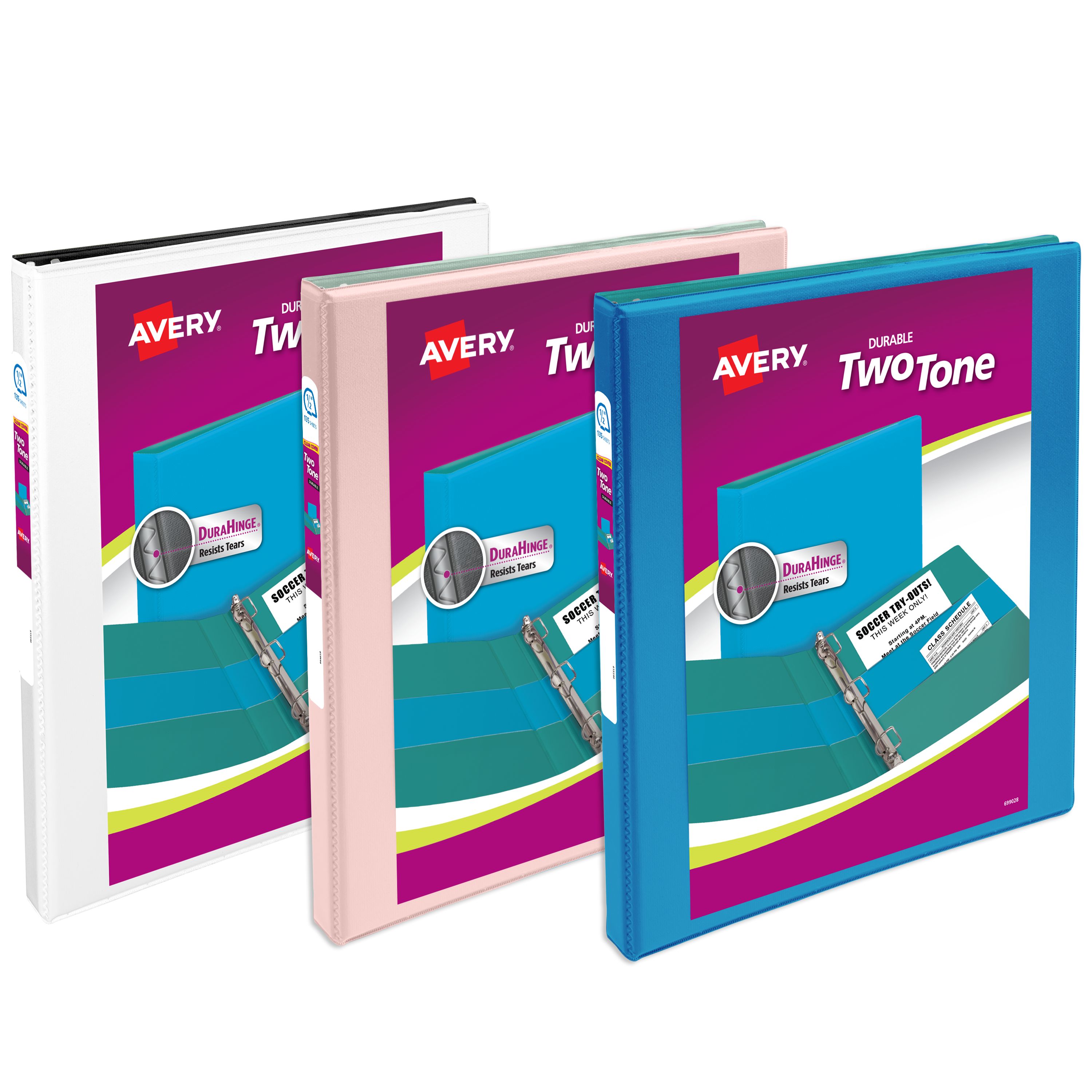 Avery® Two-Tone Durable View Binder, 1/2" Slant Rings, 120-Sheet Capacity, DuraHinge™, Assorted Colors (17241)