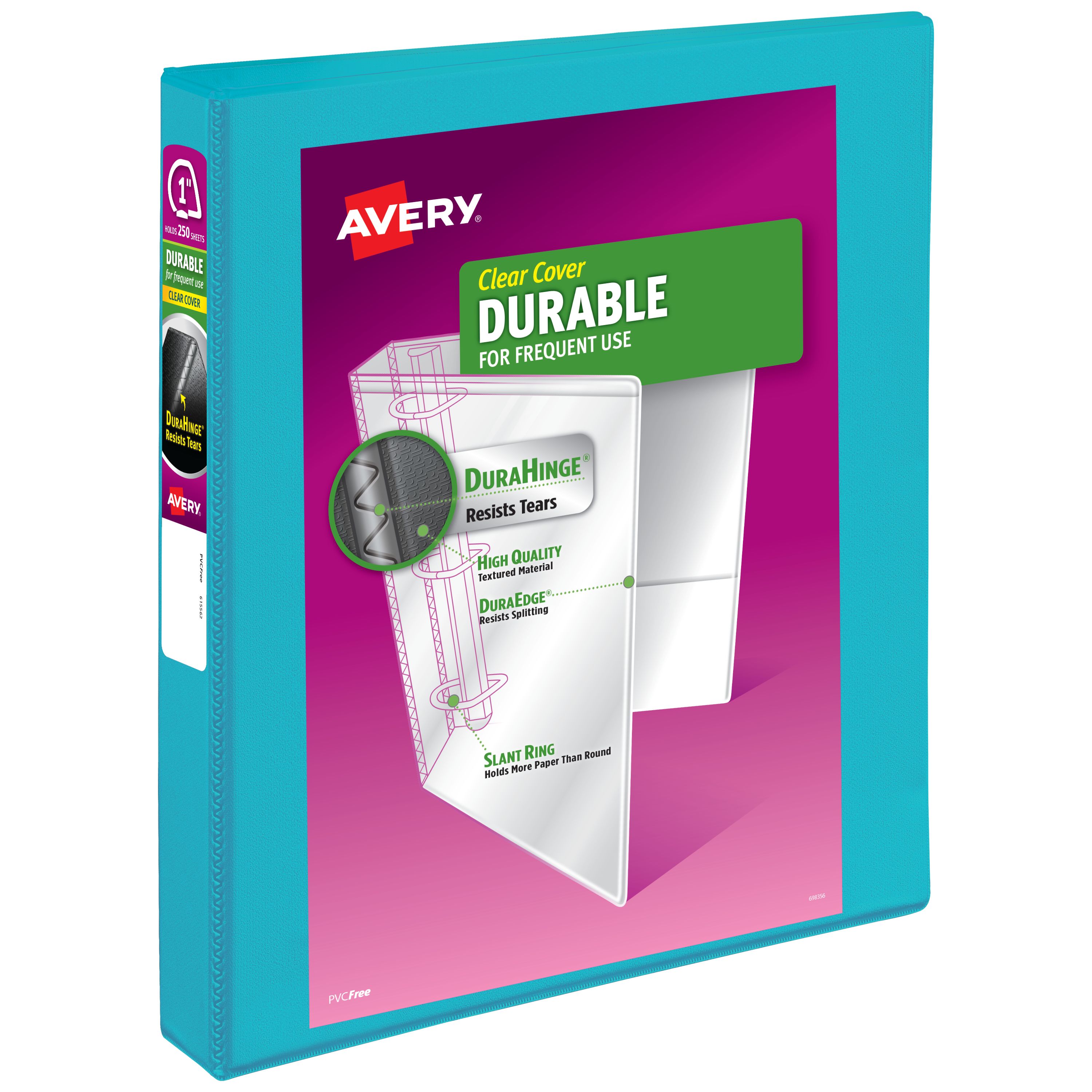 Avery® Durable View 3 Ring Binder, 1 Inch Slant Rings, 250-Sheet Capacity, Aqua Binder (17295)