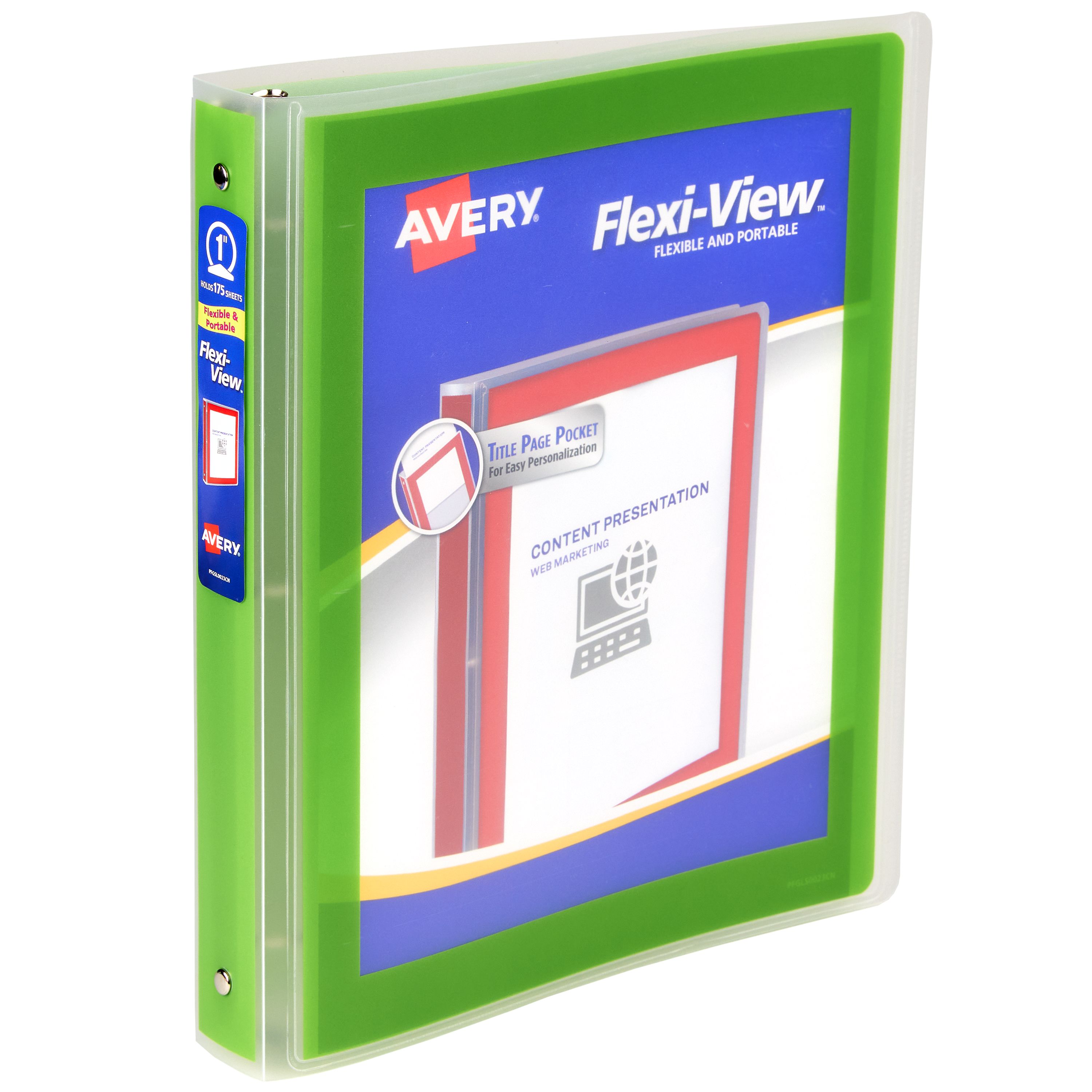 Avery® Flexi-View® 3 Ring Binder, 1" Round Rings, 175-Sheet Capacity, Chartreuse (17608)