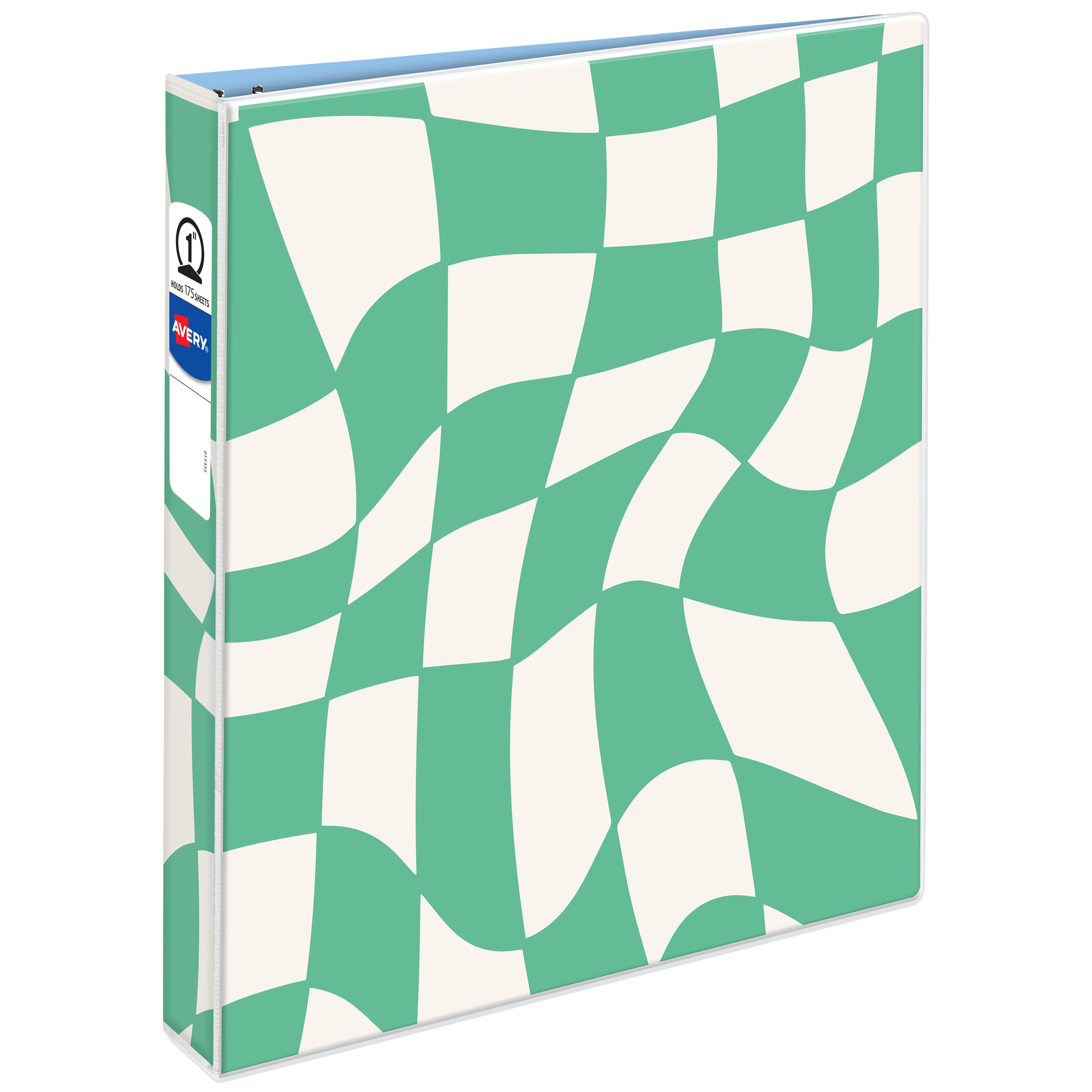 - Organize in style with this Avery binder pre-printed with a groovy checks design