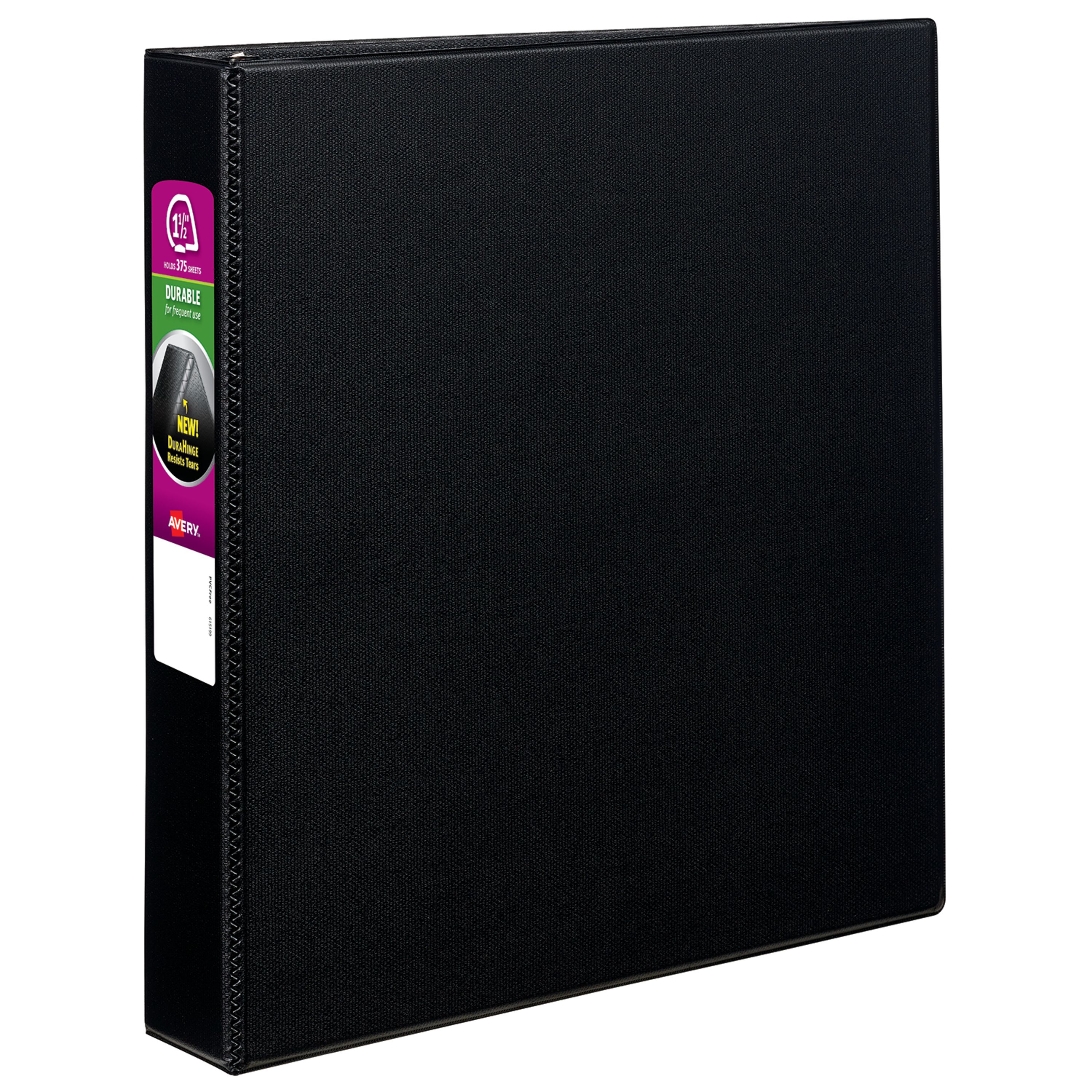 Avery® Durable Binder, 1-1/2" Slant Rings, 375-Sheet Capacity, DuraHinge™, Black (27350)