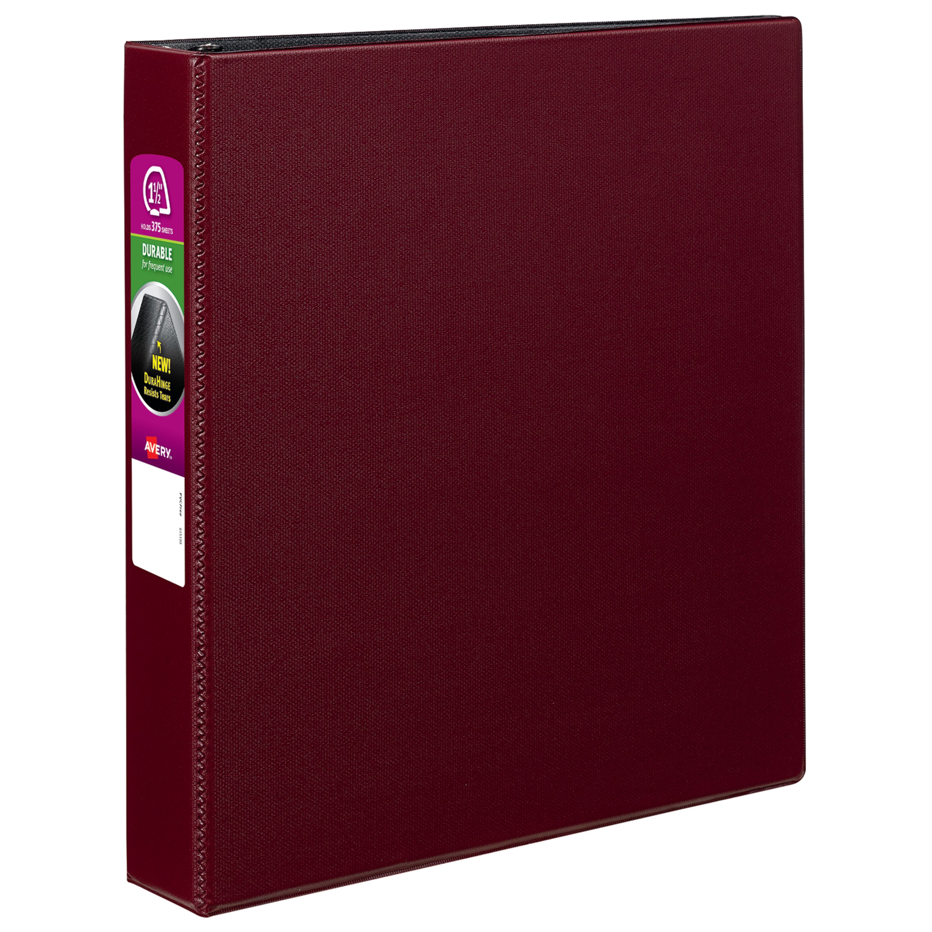 Avery® Durable Binder, 1-1/2" Slant Rings, 375-Sheet Capacity, DuraHinge™, Burgundy (27352)