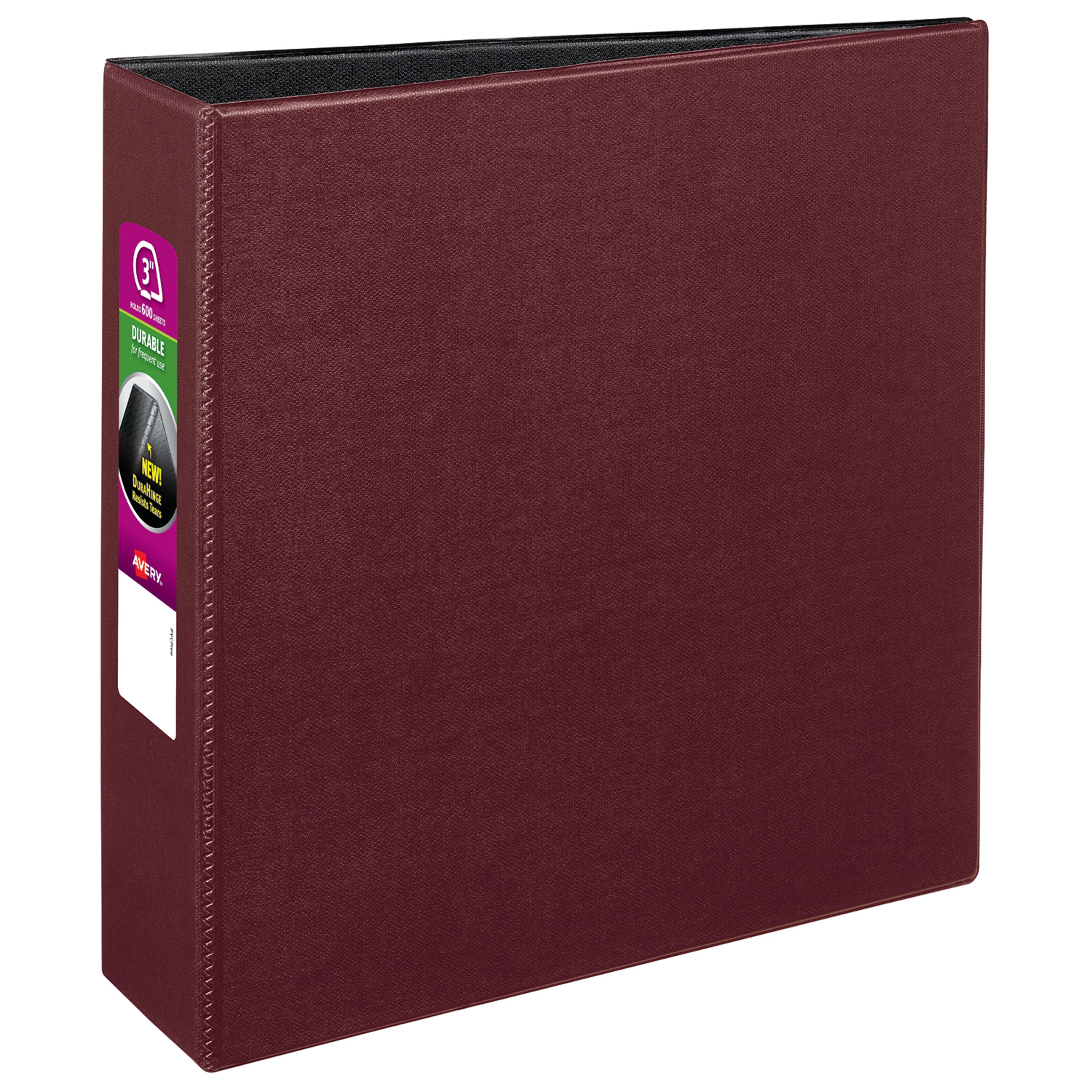 Avery® Durable Binder, 3" Slant Rings, 600-Sheet Capacity, DuraHinge™, Burgundy (27652)