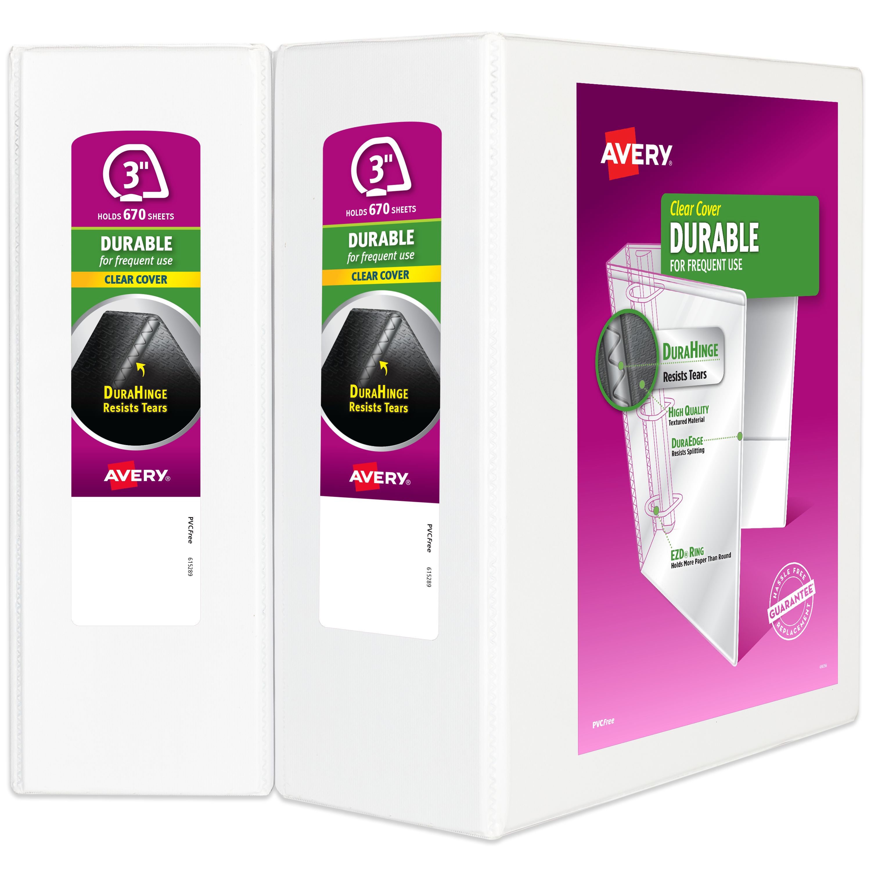 Avery® Durable View 3 Ring Binders, 3" EZD Rings, 2 White Binders (35307)