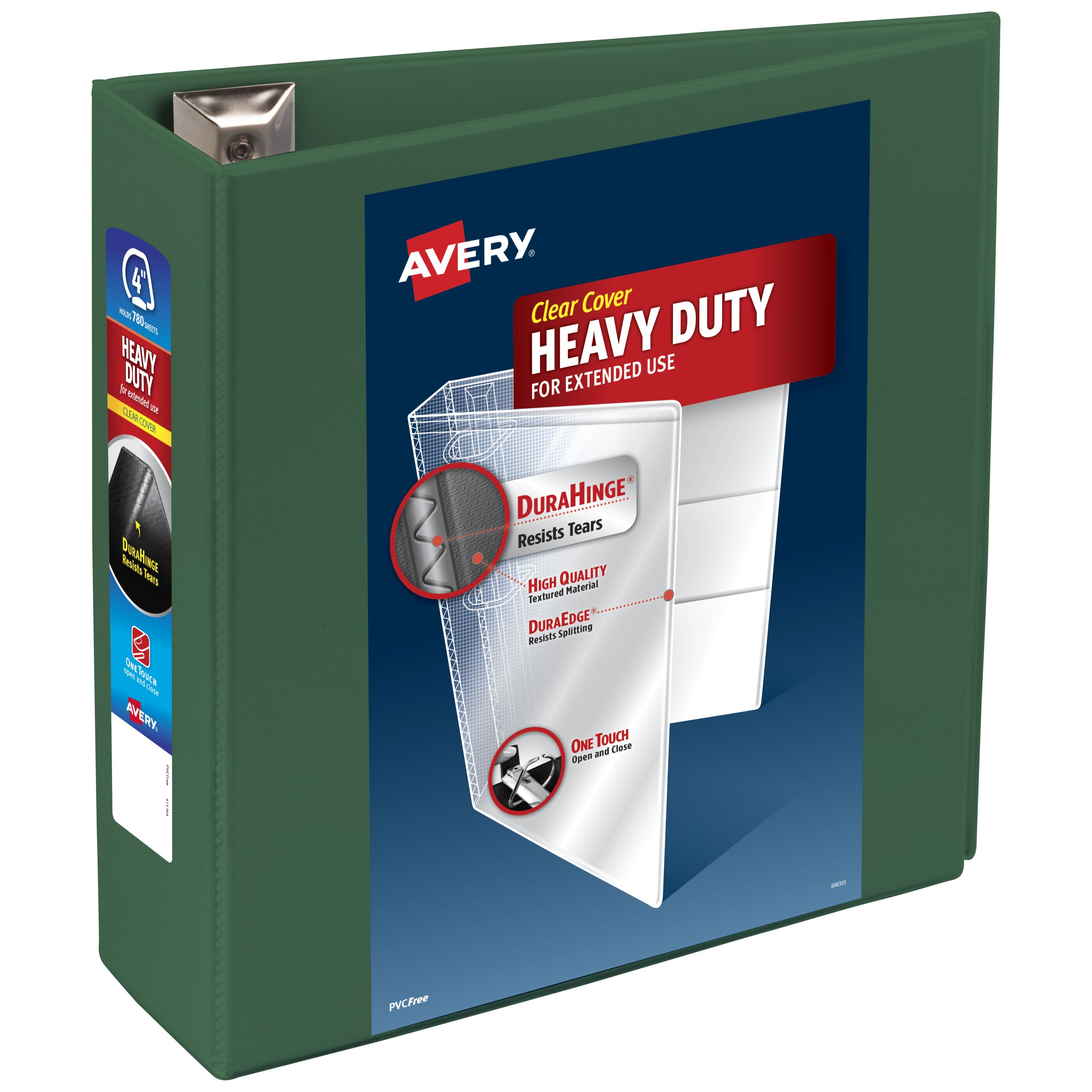 Avery® Heavy-Duty View Binder, 4" One Touch EZD® Rings, 780-Sheet Capacity, 4-1/2" Spine, Green (79110)