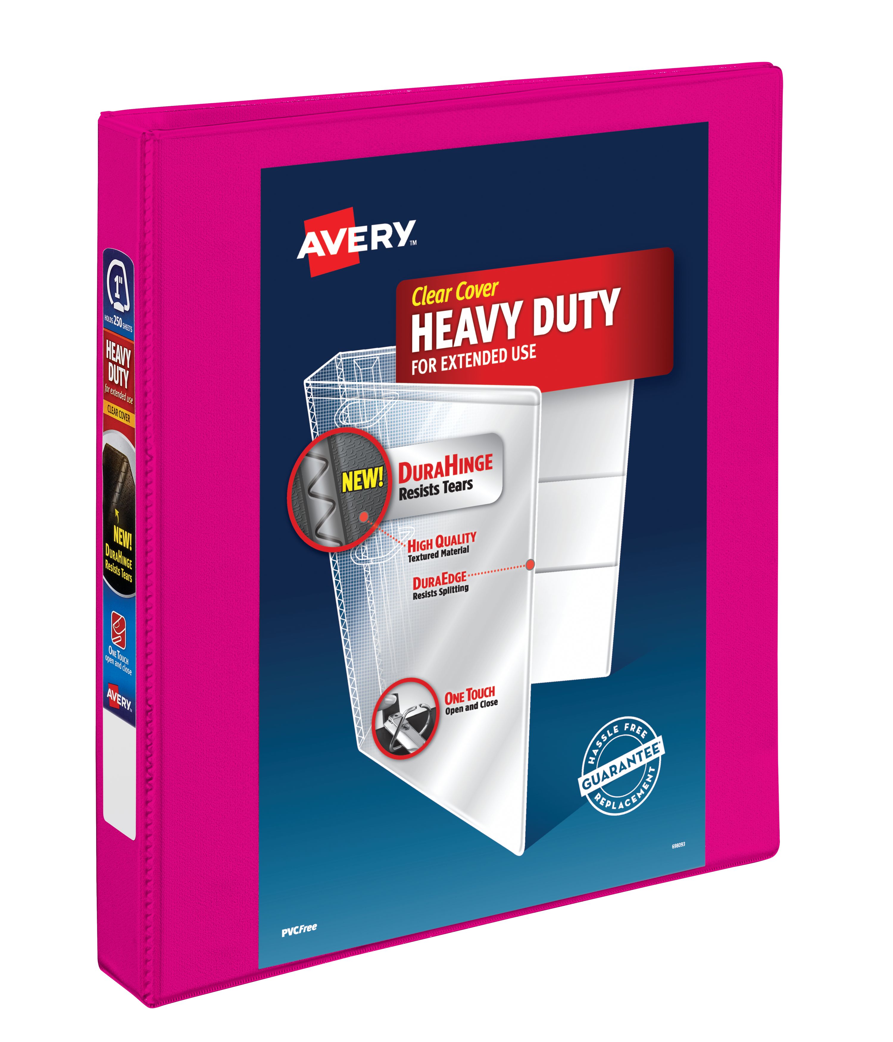 Avery® Heavy-Duty View Binder, 1" One Touch Slant Rings, 250-Sheet Capacity, DuraHinge®, Pink (79719)