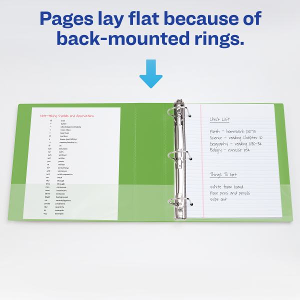 - Wide front and back binder panels fully cover standard dividers and sheet protectors