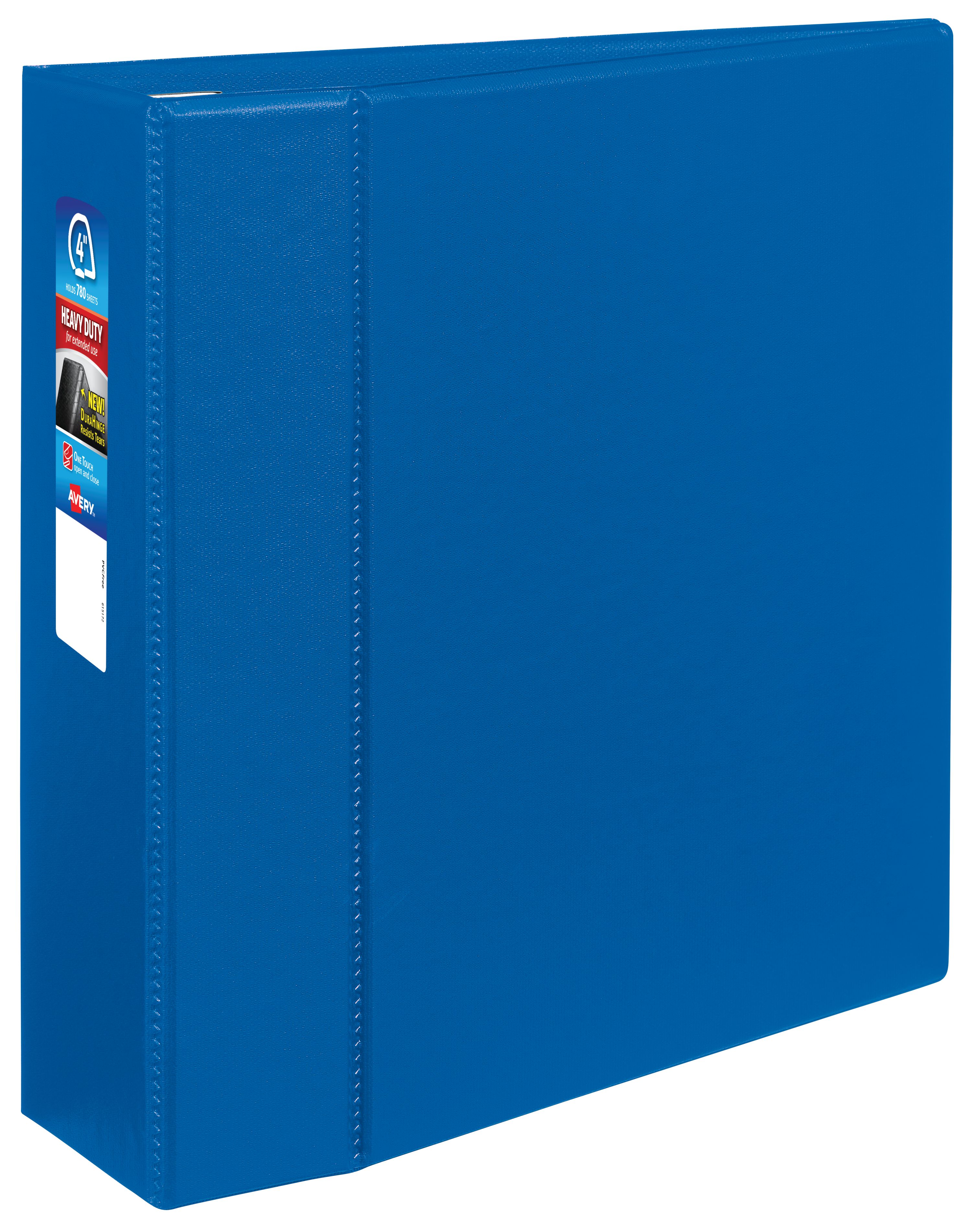 Avery® Heavy-Duty Binder, 4" One-Touch Rings, 780-Sheet Capacity, DuraHinge™, Navy Blue (79824)