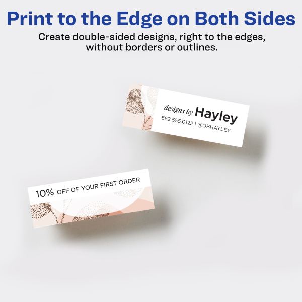 - Print professional customizable business cards with full-bleed backgrounds using our print-to-the-edge feature that allows you to print to the edge without a border or outline175Create beautiful double-sided designs with 80lb cover/216 gsm cards that can be printed on both sides of the sheet