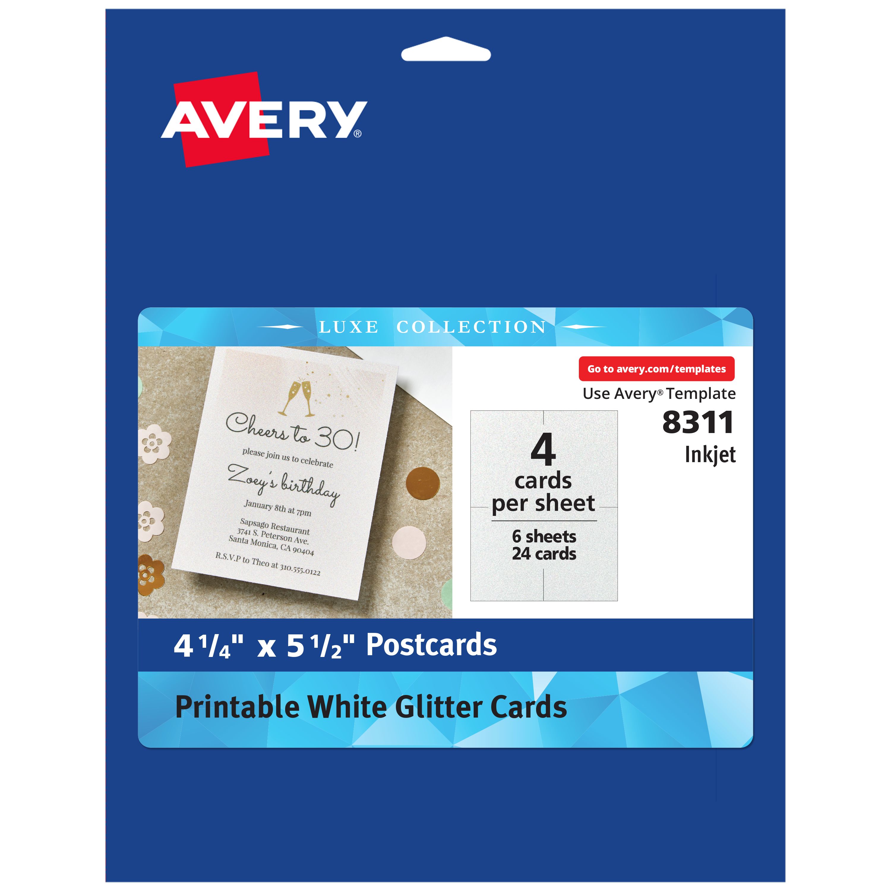 - Add a spectacular sparkle and shine to postcards, thank you cards, baby shower invitations, birthday invitations, gender reveal invitations and more with the sparkling white diamond print 4-1/4" x 5-1/2" Avery Luxe Collection printable glitter cardstock