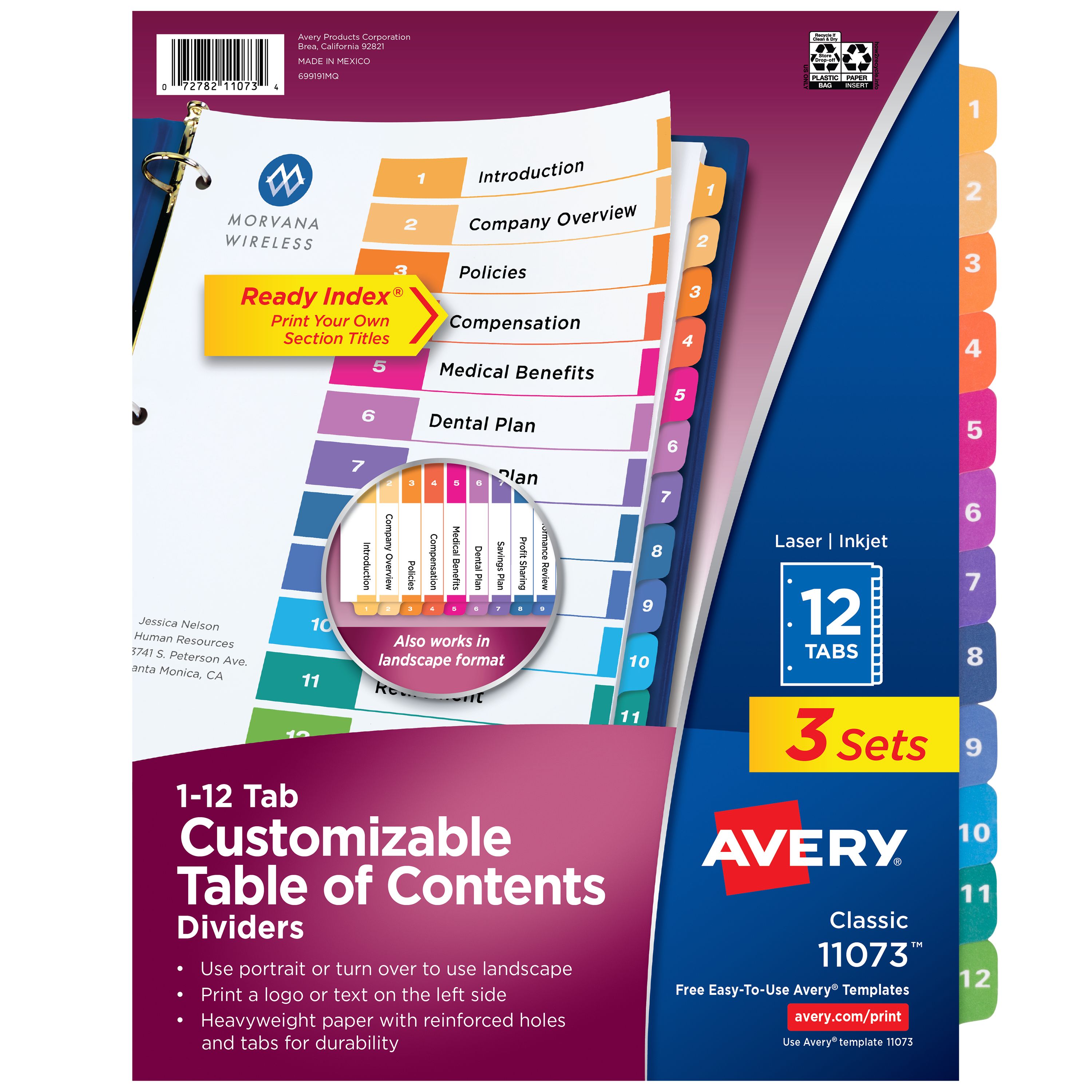 Avery® Ready Index® Dividers, 12 Tab Sets, Customizable Table of Contents, Multicolor Tabs, 3 Sets (11073)