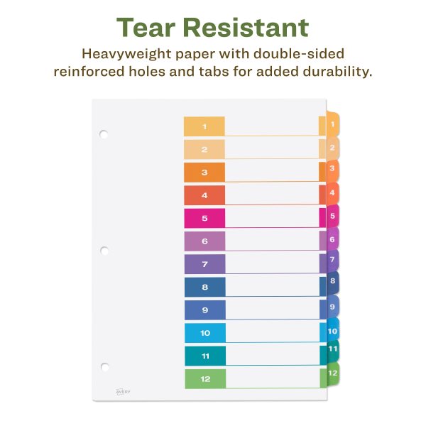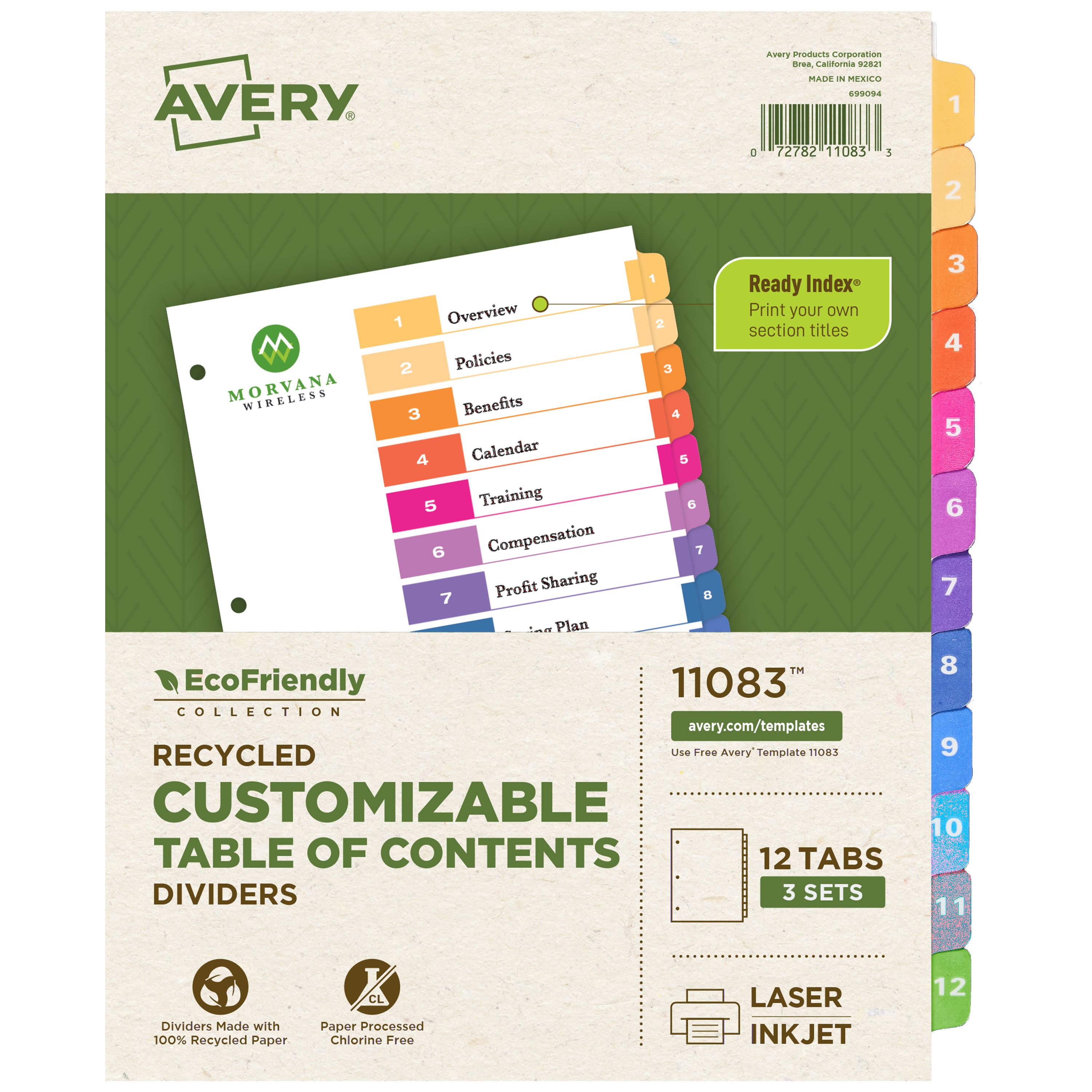 Avery® EcoFriendly Recycled Dividers, 12-Tab, Multicolor, Ready Index® Customizable Table of Contents, 3 Sets (11083)