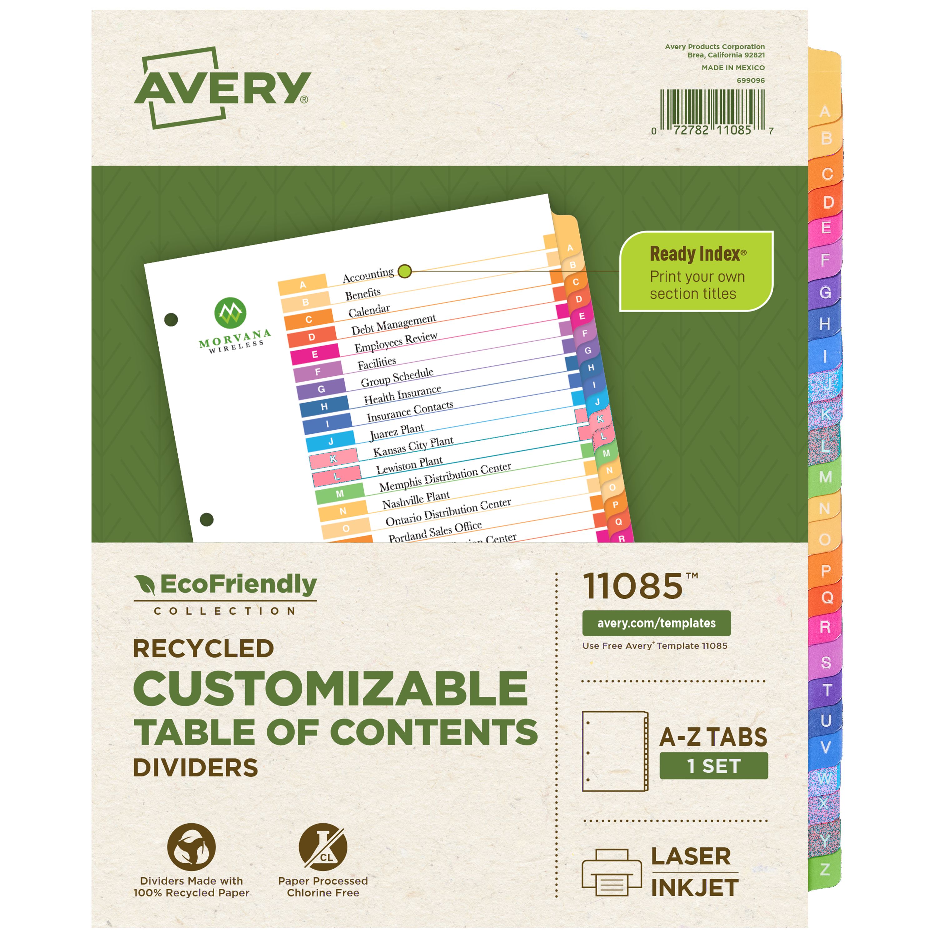Avery® EcoFriendly Recycled A-Z Dividers, Multicolor, Ready Index® Customizable Table of Contents, 1 Set (11085)