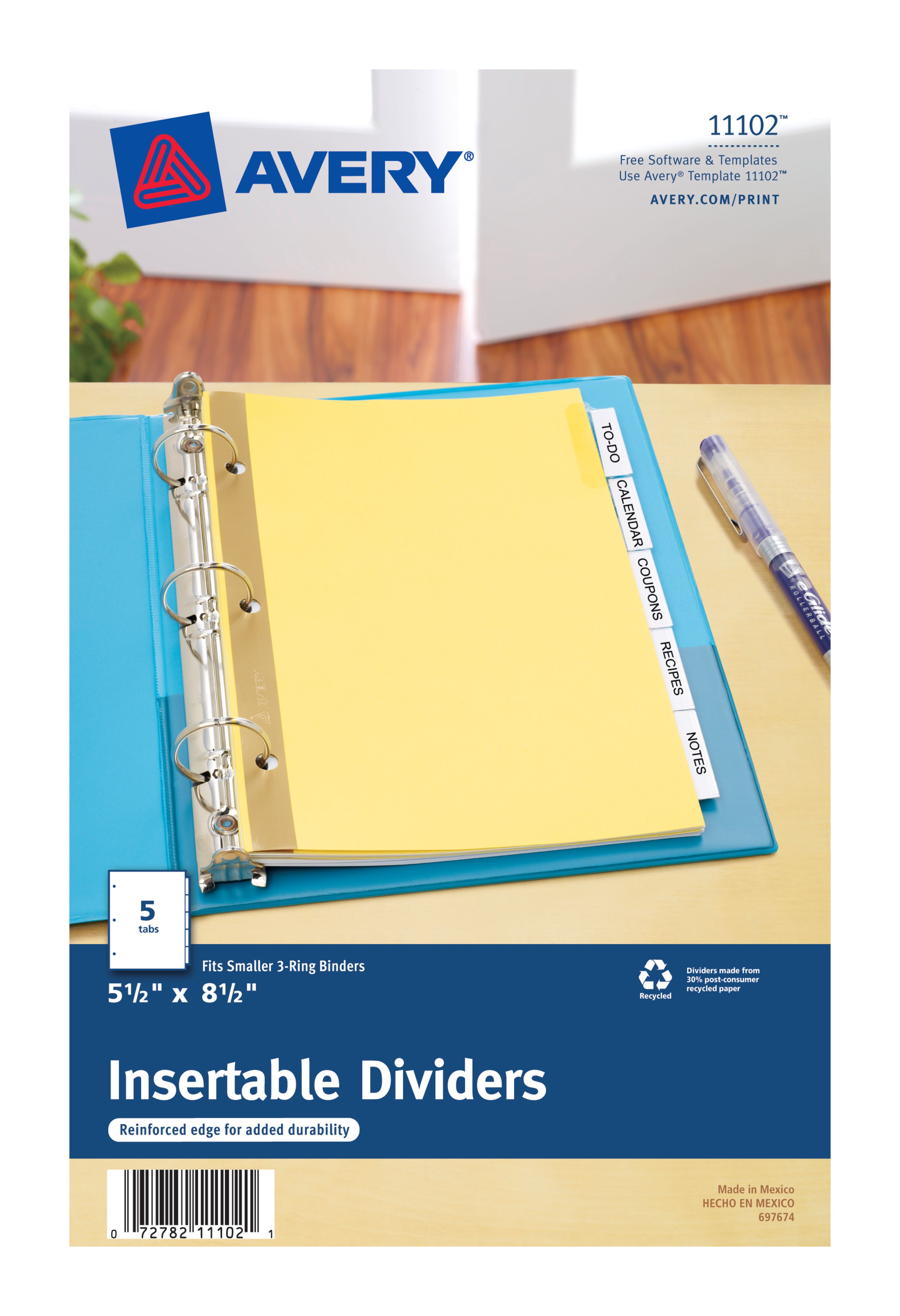 Avery® Mini Insertable Tab Dividers, 5-1/2" x 8-1/2", 5-Tab Set (11102)