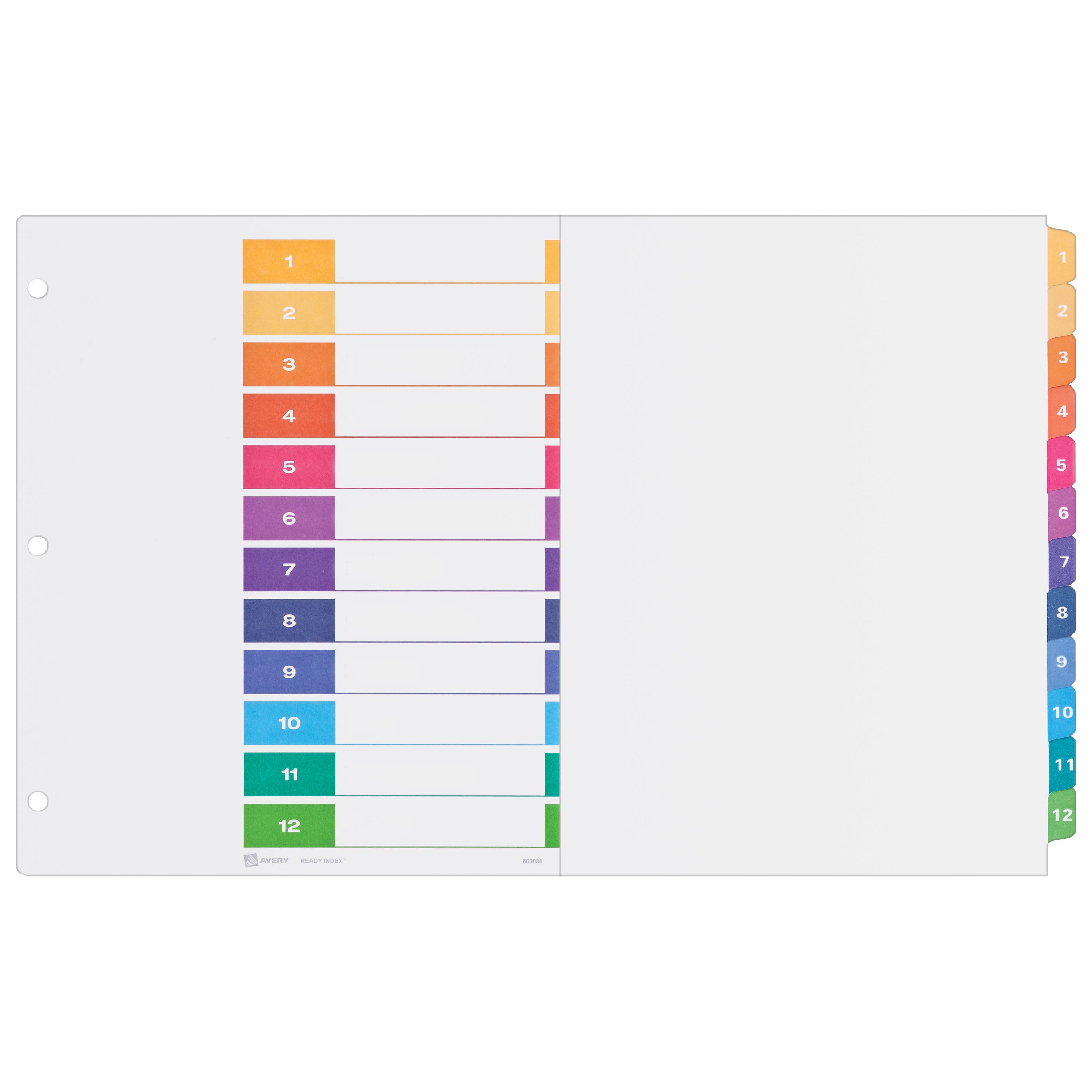 - Each of the preprinted 1-12 divider tabs feature its own preprinted white number