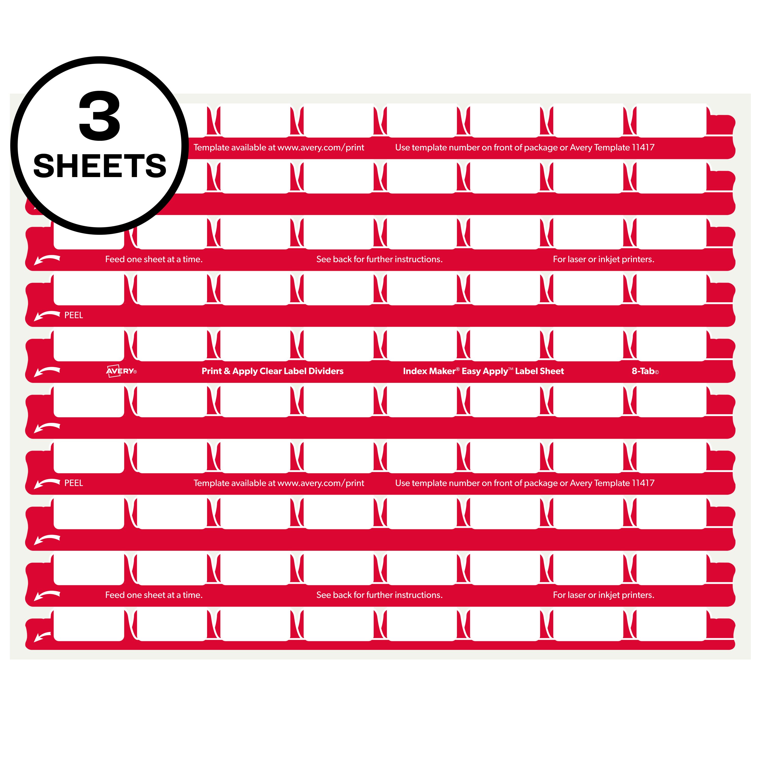 Avery® Print & Apply Clear Label Sheet Refills, Index Maker® Easy Apply™ Labels, 8-Tab, 3 Sheets (11226)