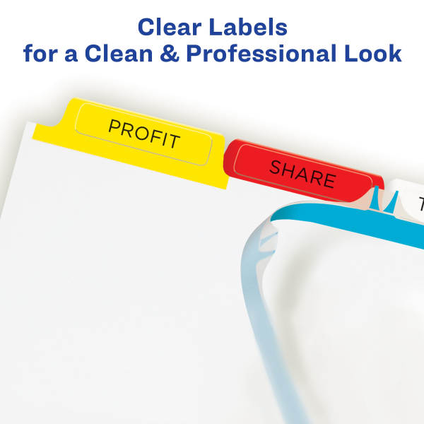 - Clear labels virtually disappear giving tab dividers a printed-on look