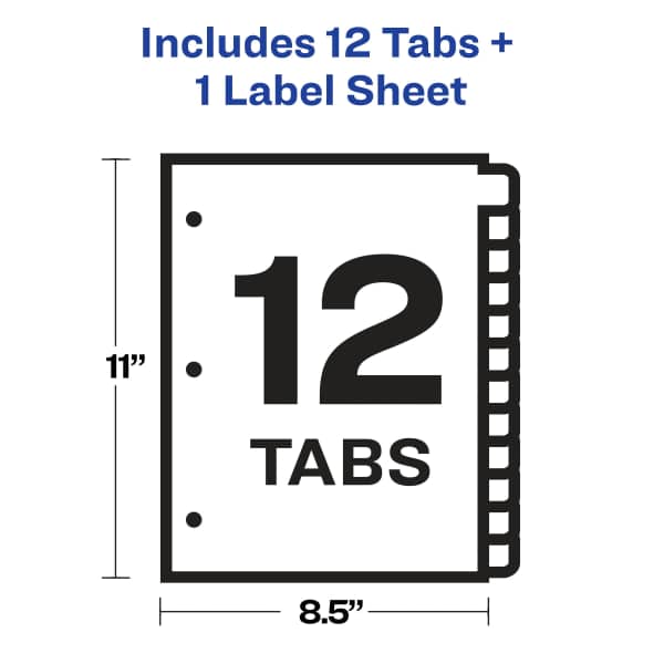 Avery® Print & Apply Clear Label Dividers, Index Maker® Easy Apply™ Printable Label Strip, 12 White Tabs (11428)