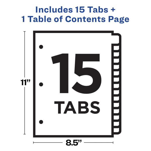 Avery® Ready Index® Plastic 15 Tab Binder Dividers, Customizable Table of Contents, Multicolor Tabs, 1 Set (11820)