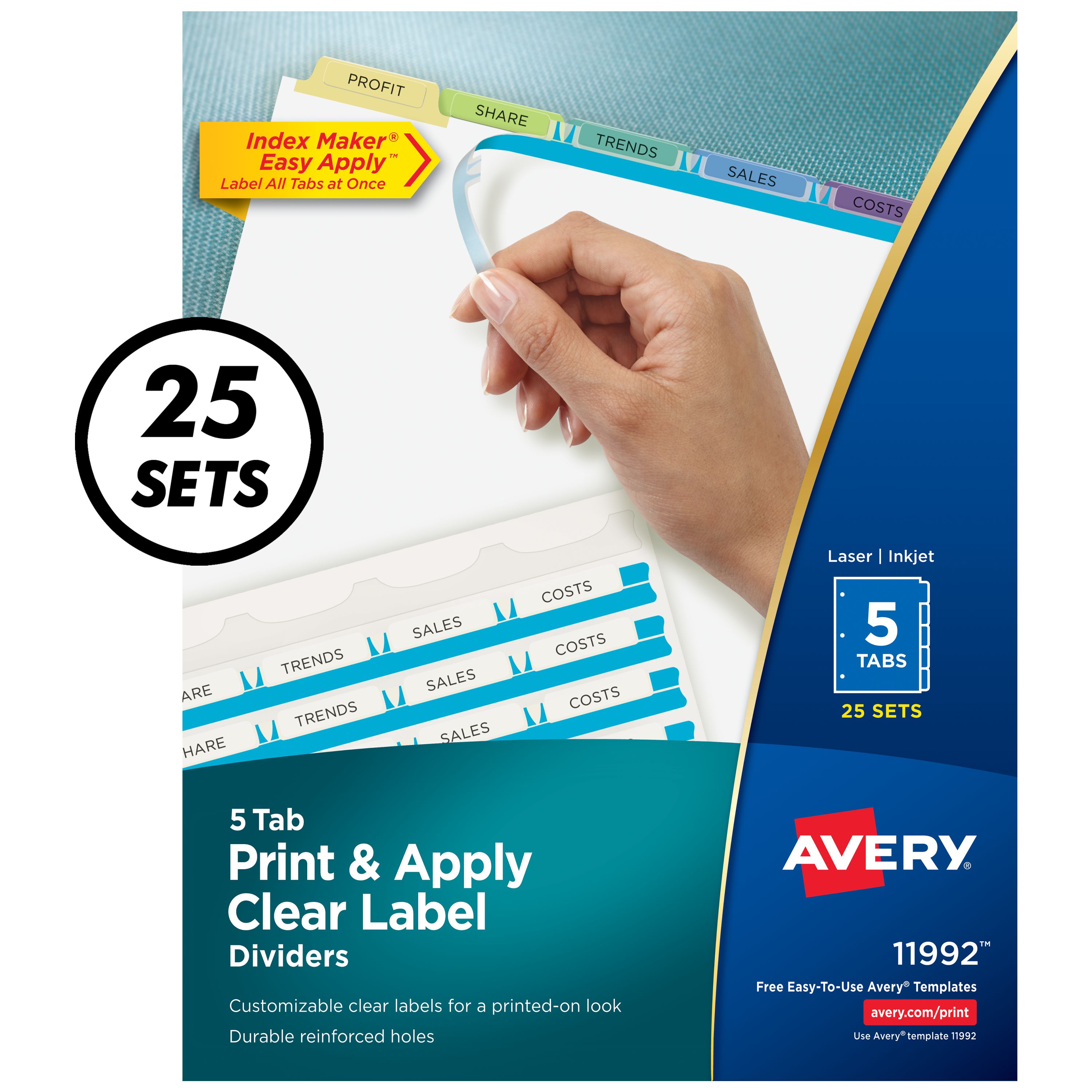 Avery® Print & Apply Clear Label Dividers, Index Maker® Easy Apply™ Printable Label Strip, 5 Pastel Tabs, 25 Sets (11992)