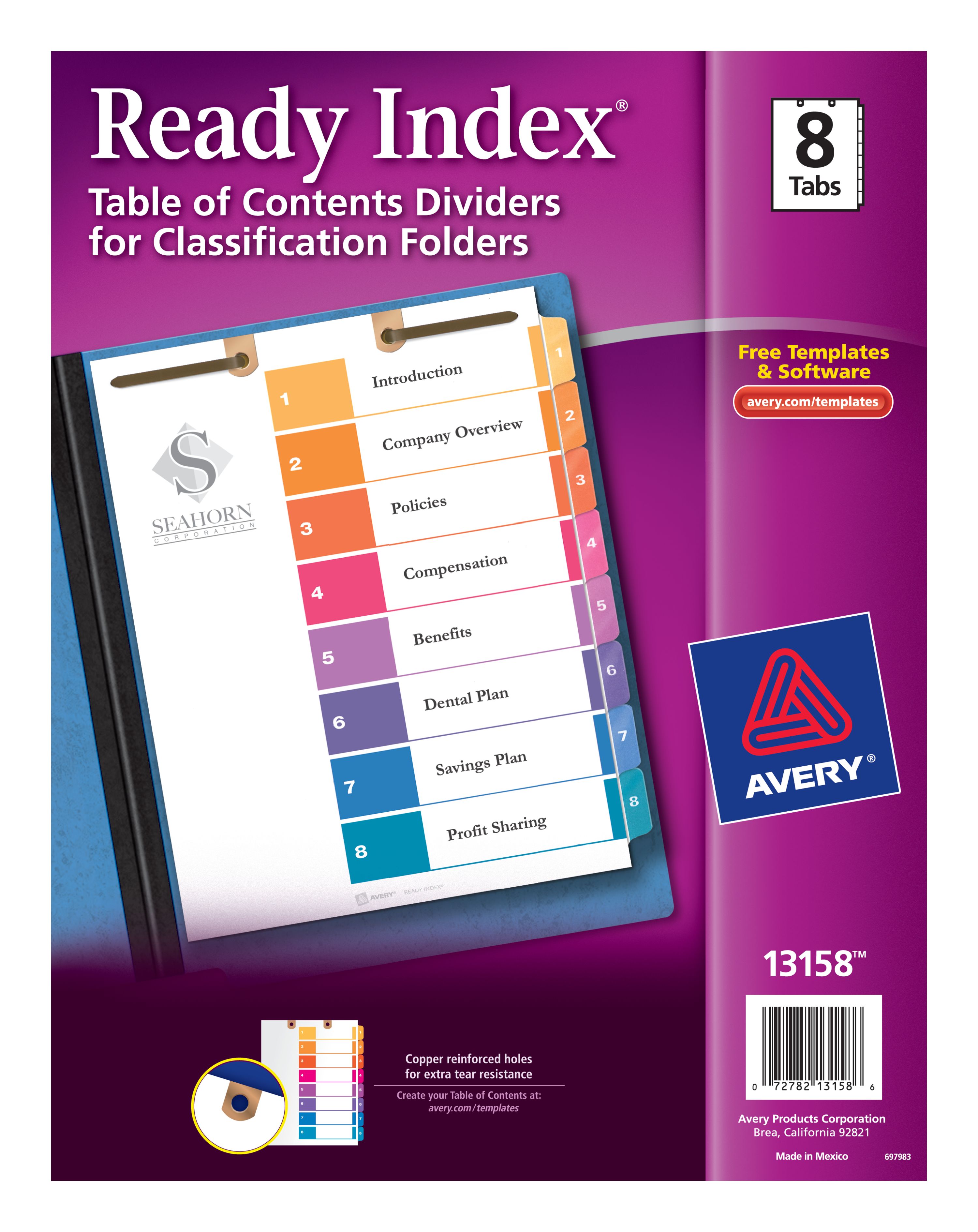 Avery® Customizable Table of Contents Dividers for 2-Prong Folders, Ready Index® Printable Section Titles, Preprinted 1-8 Multicolor Side Tabs, 1 Set (13158)