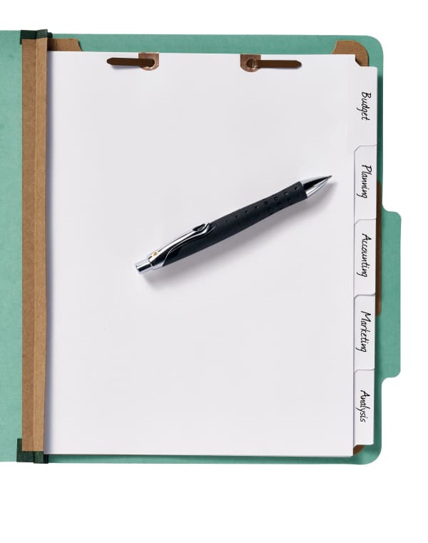 - Tabs laminated surface lets you write, erase and reuse dividers